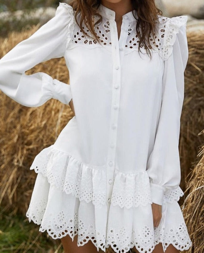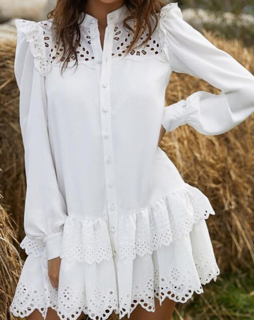 Beautiful MARIA DRESS has mini length, buttoned. For your next outdoor occasion, accessorize with heels/flats.