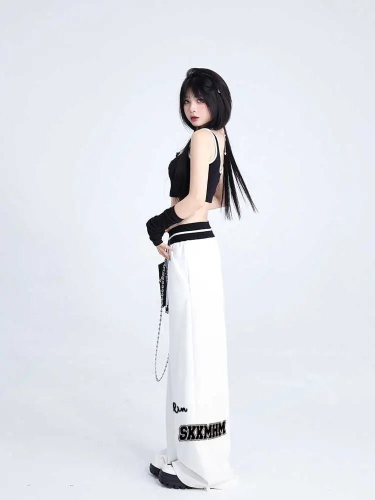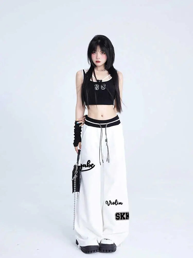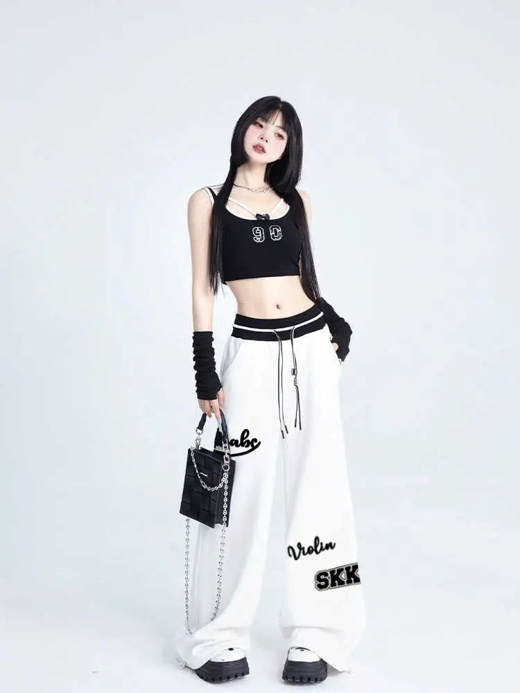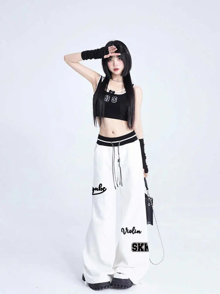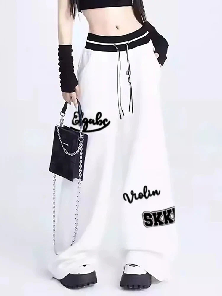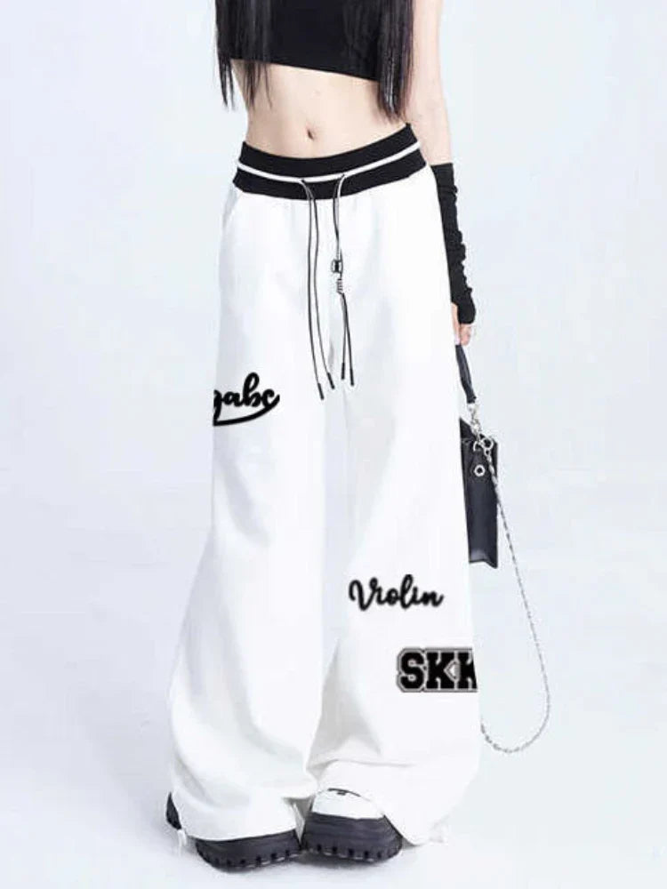 Women Sports Pants Hip Hop Baggy Letter Pattern Wide Leg Jogging Pants