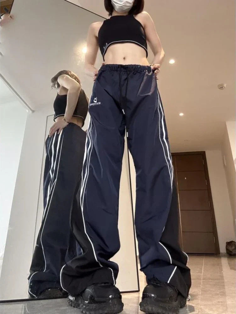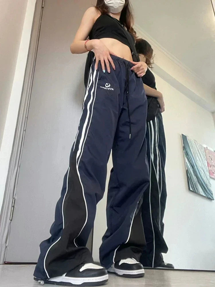 Harajuku Fashion Stripe Straight Wide Leg Jogging Y2k Hip Hop Pants