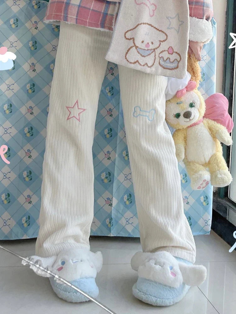 Harajuku Corduroy Pants Women Sweet Cute Wide Leg Pants
