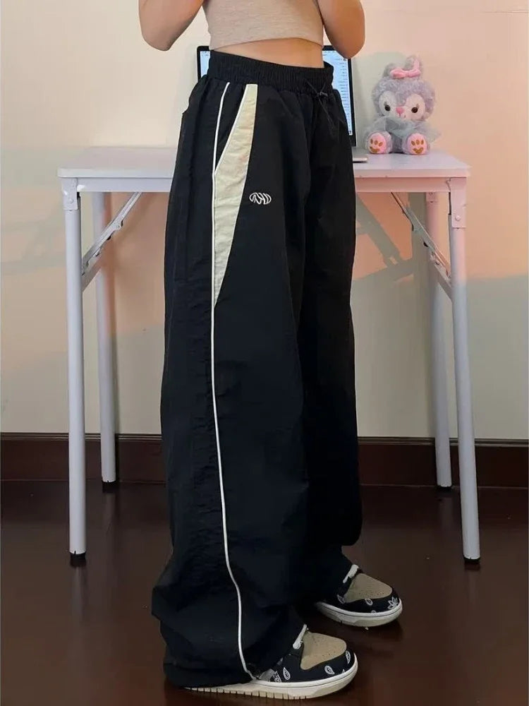 Retro Sports Pants Women Streetwear Baggy Wide Leg Casual Pants