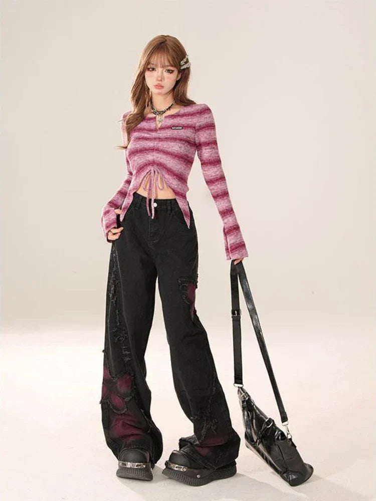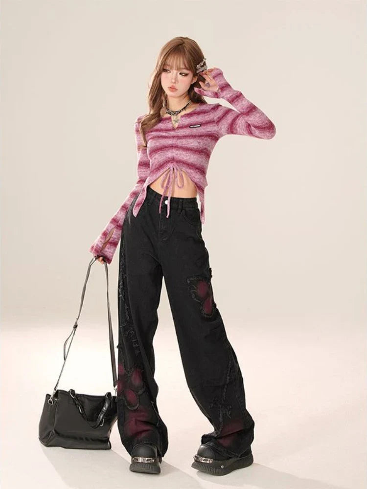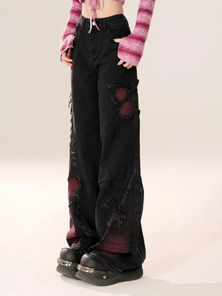 High Waist Jeans Women Y2k Baggy Butterfly Tie Dye Punk Wide Leg Denim Pants