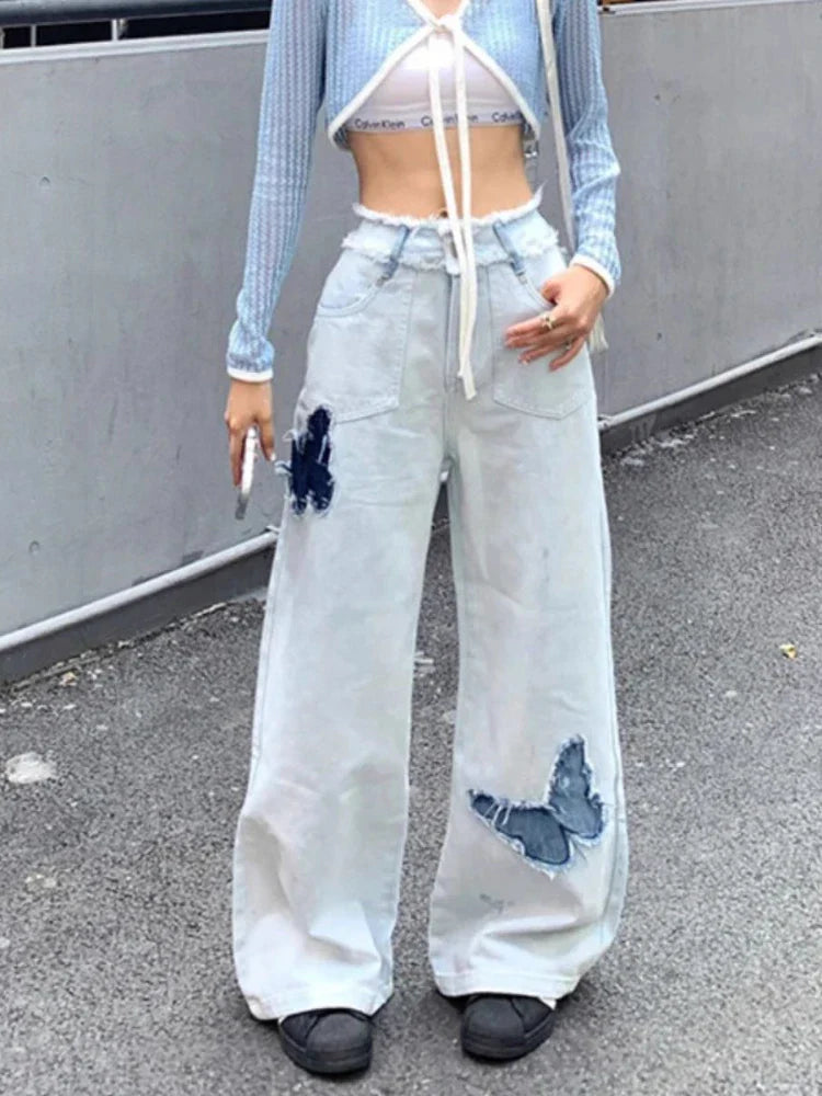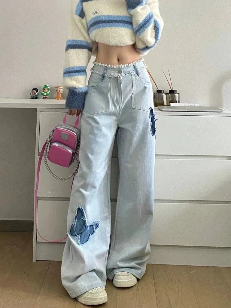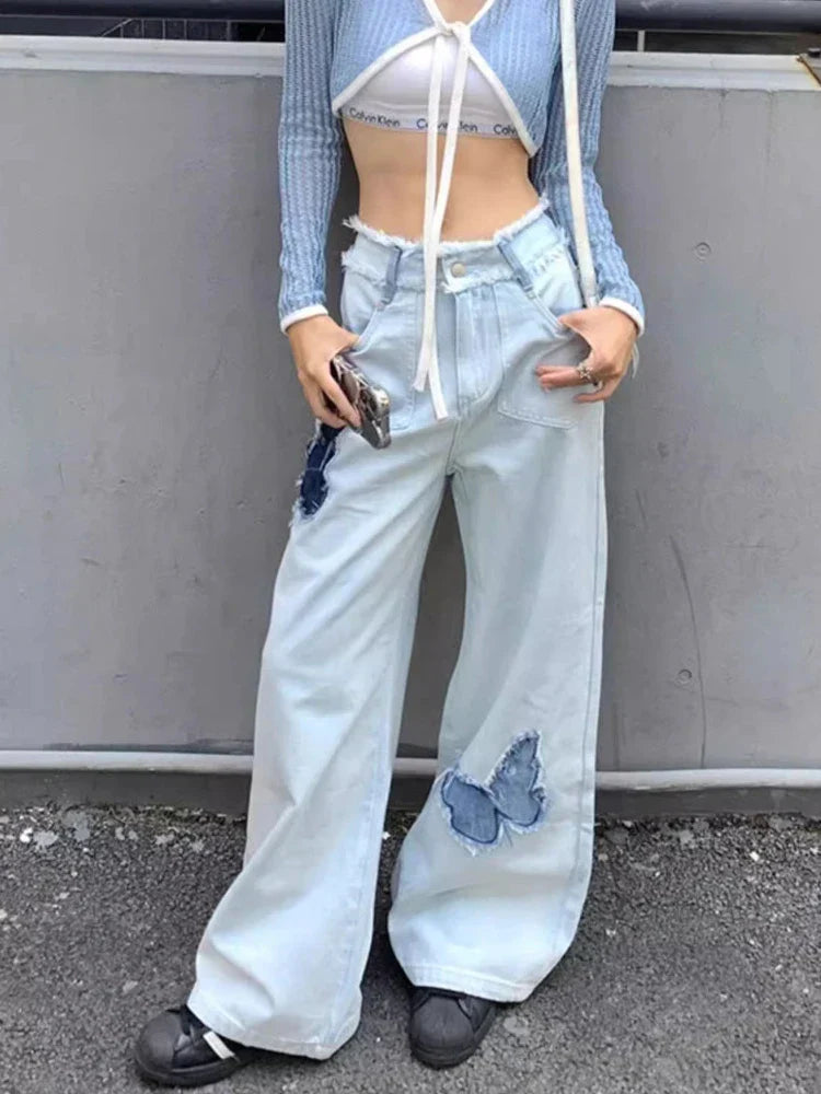 Jeans Plus Size Women Y2k Loose Patchwork High Waist Denim Pants