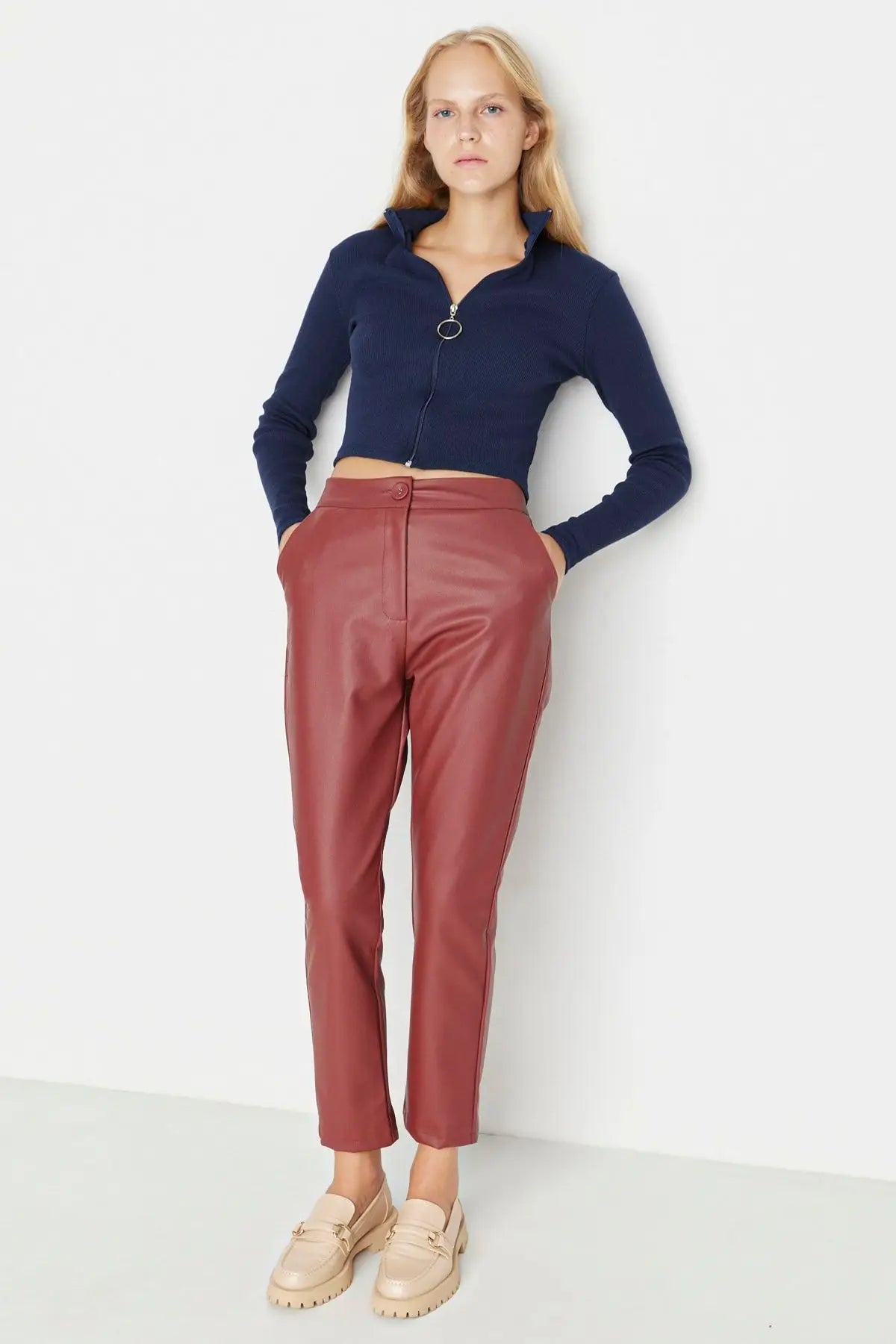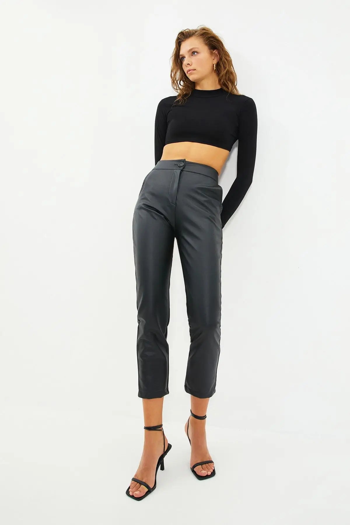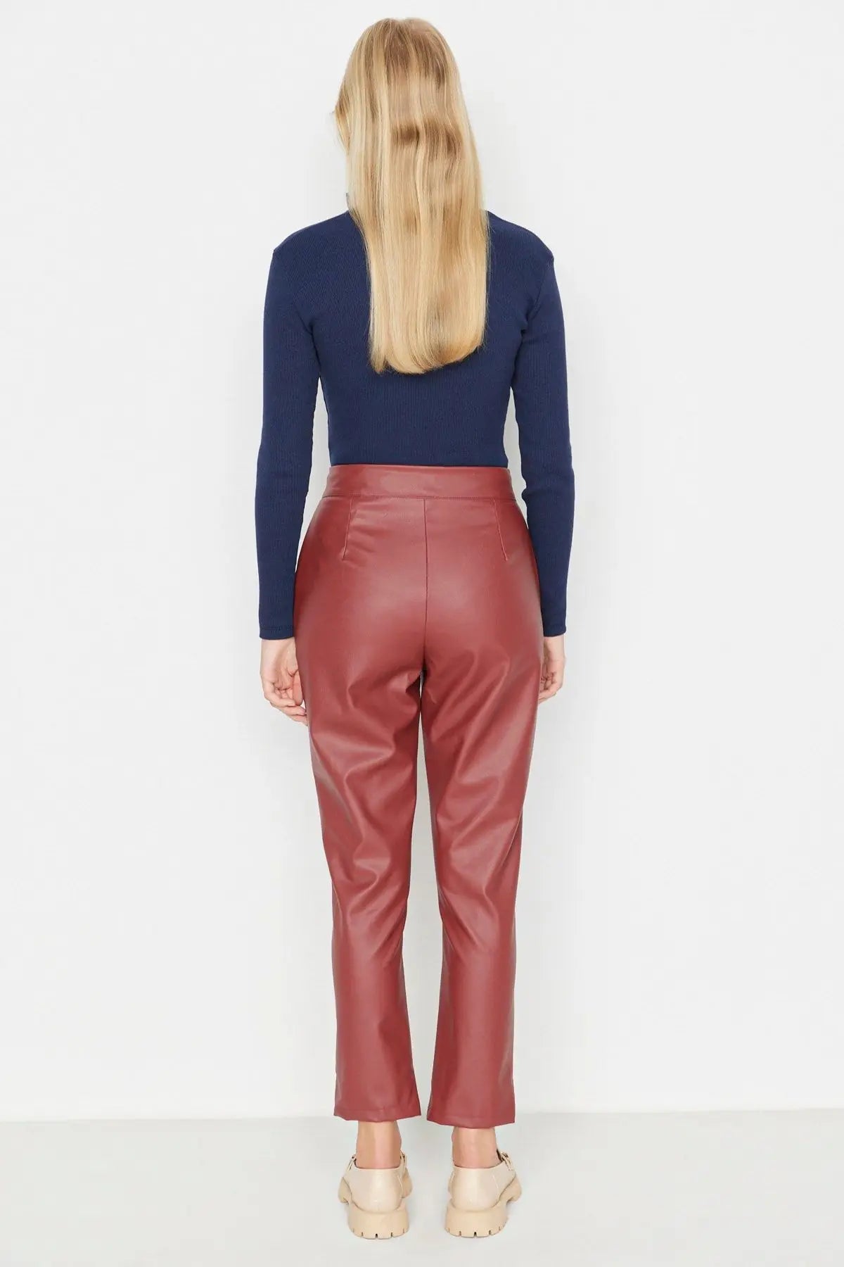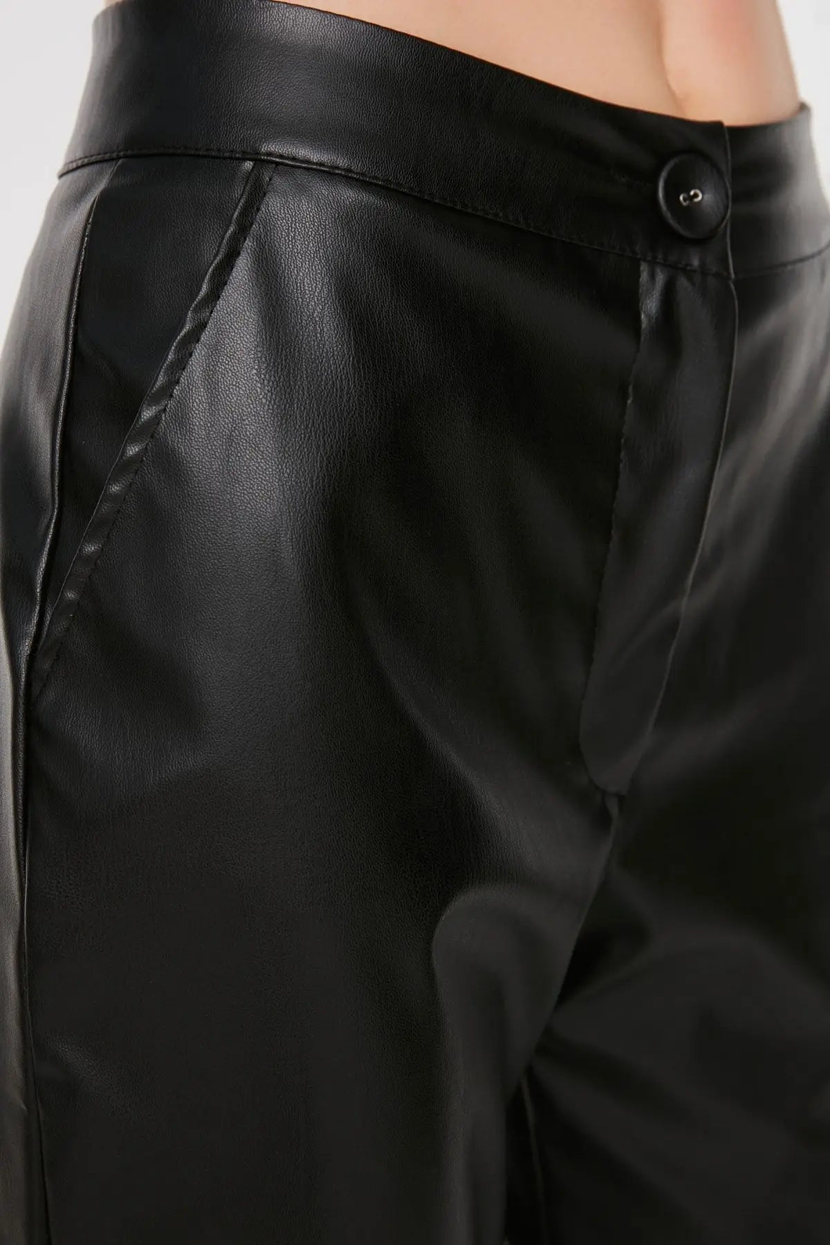 Sa coupe cigarette et sa finition en faux cuir ajoutent une touche moderne à votre tenue, parfait pour des looks streetwear stylés. Il est conçu sans doublure, offrant un style épuré et une allure chic.