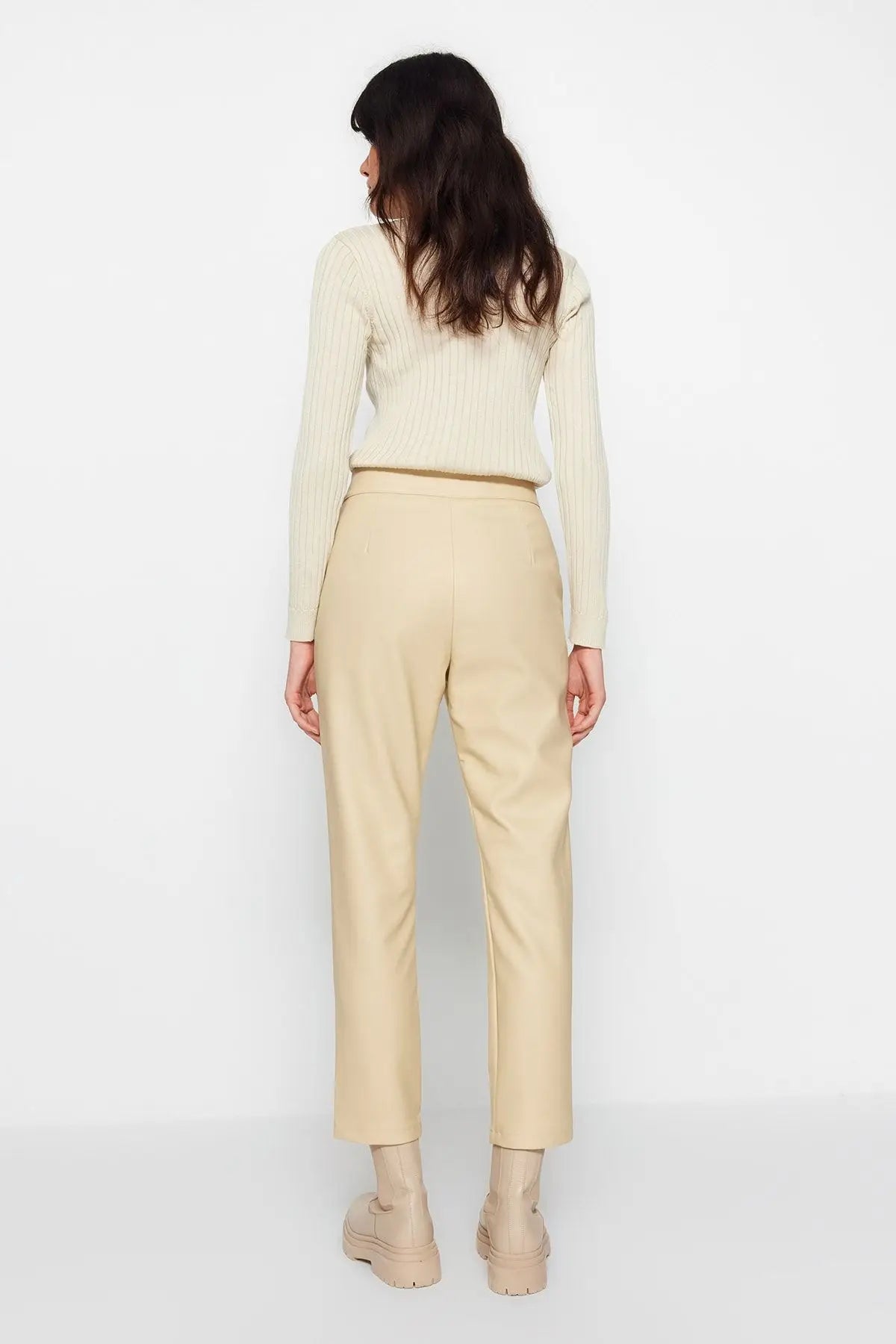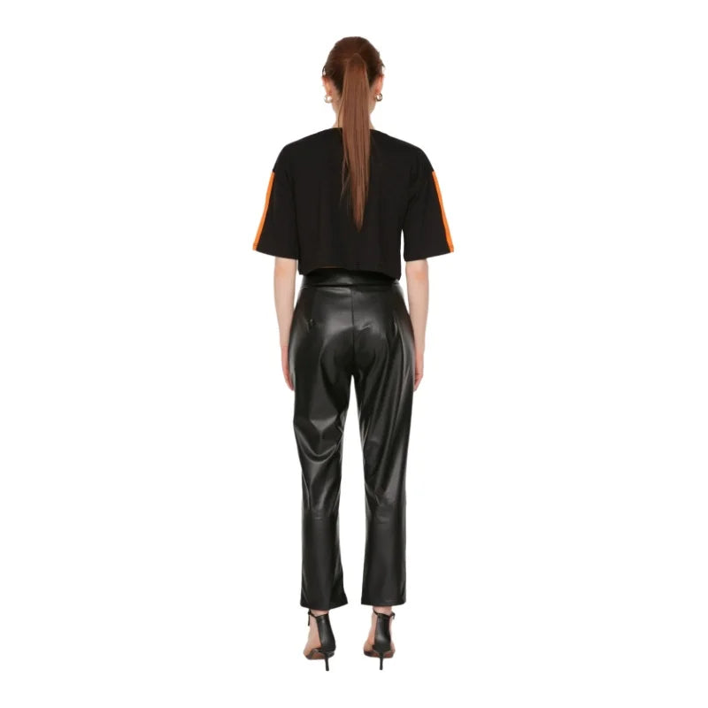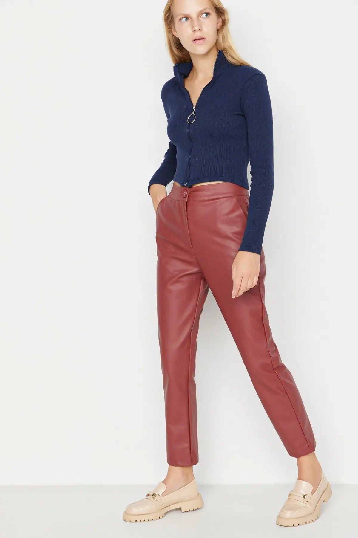 Sa coupe cigarette et sa finition en faux cuir ajoutent une touche moderne à votre tenue, parfait pour des looks streetwear stylés. Il est conçu sans doublure, offrant un style épuré et une allure chic.