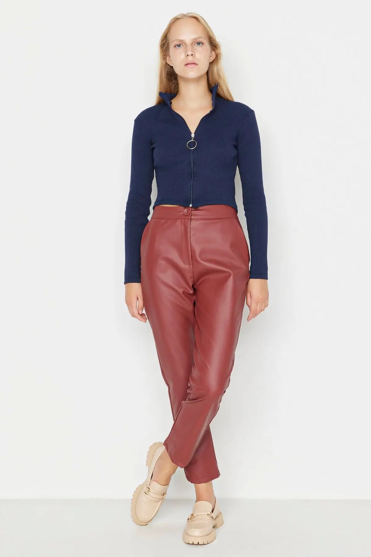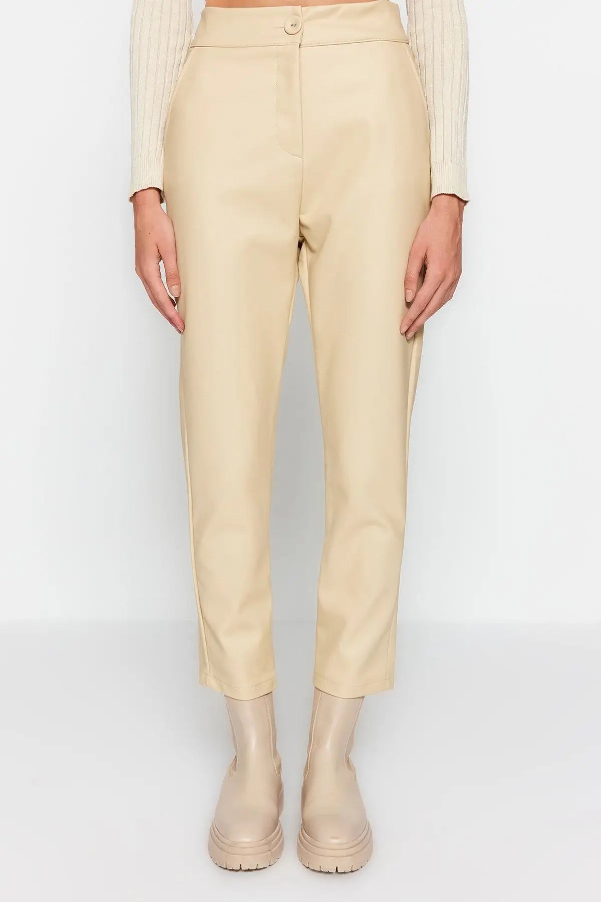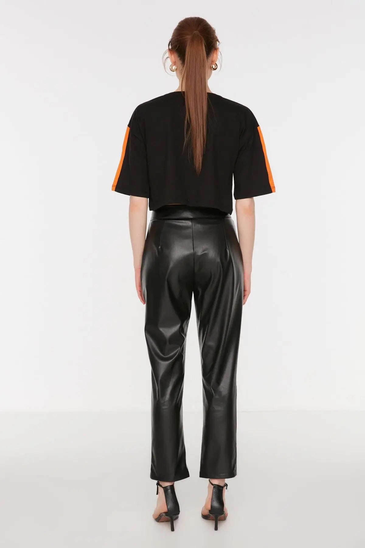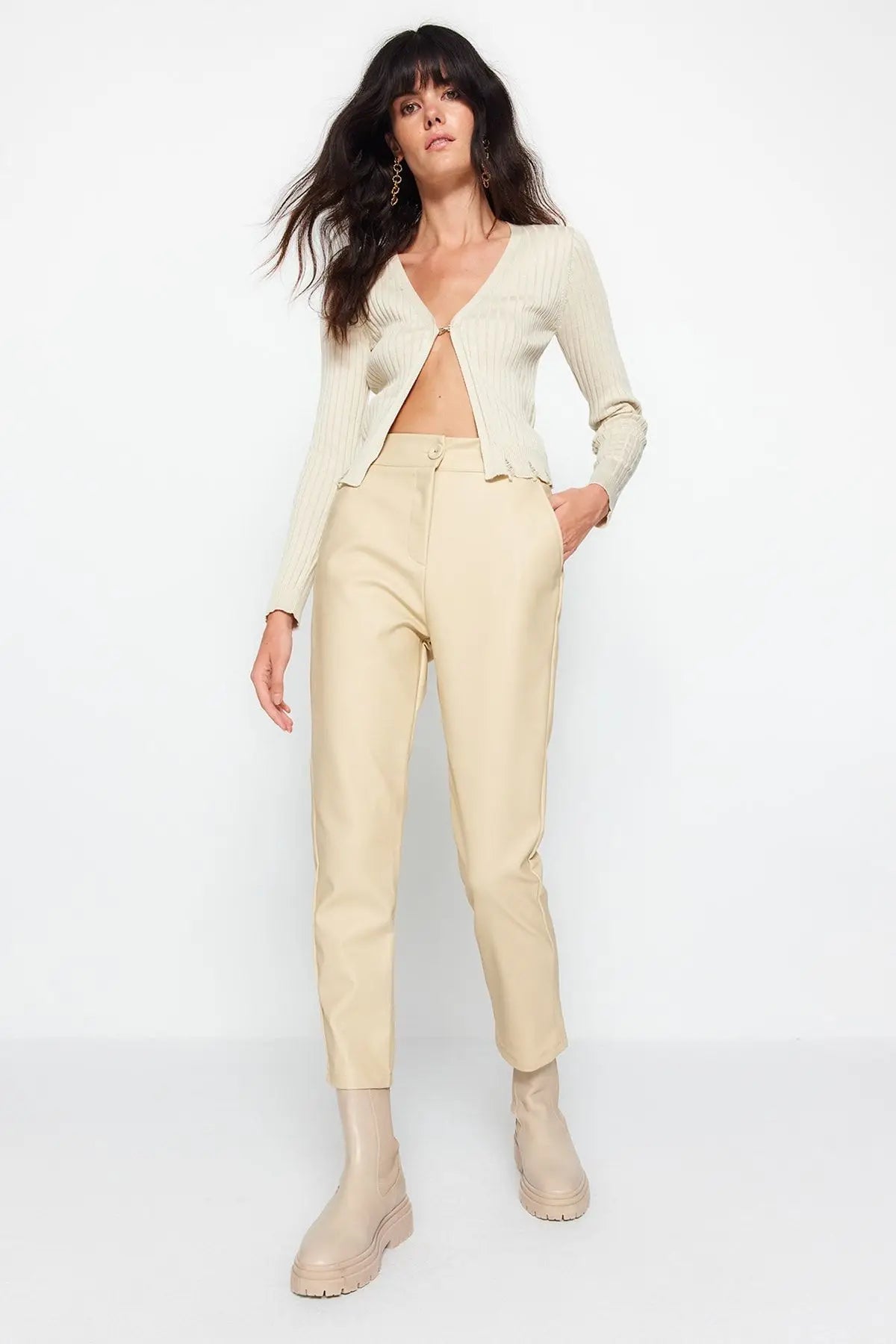 Sa coupe cigarette et sa finition en faux cuir ajoutent une touche moderne à votre tenue, parfait pour des looks streetwear stylés. Il est conçu sans doublure, offrant un style épuré et une allure chic.