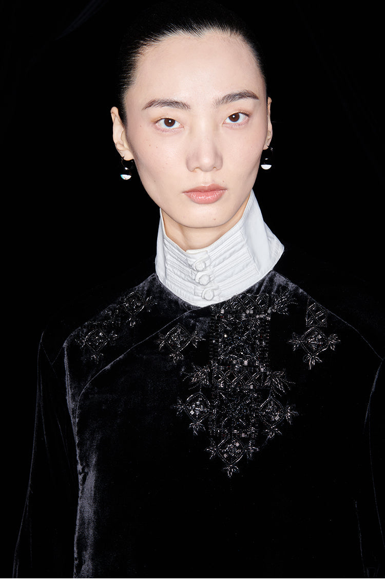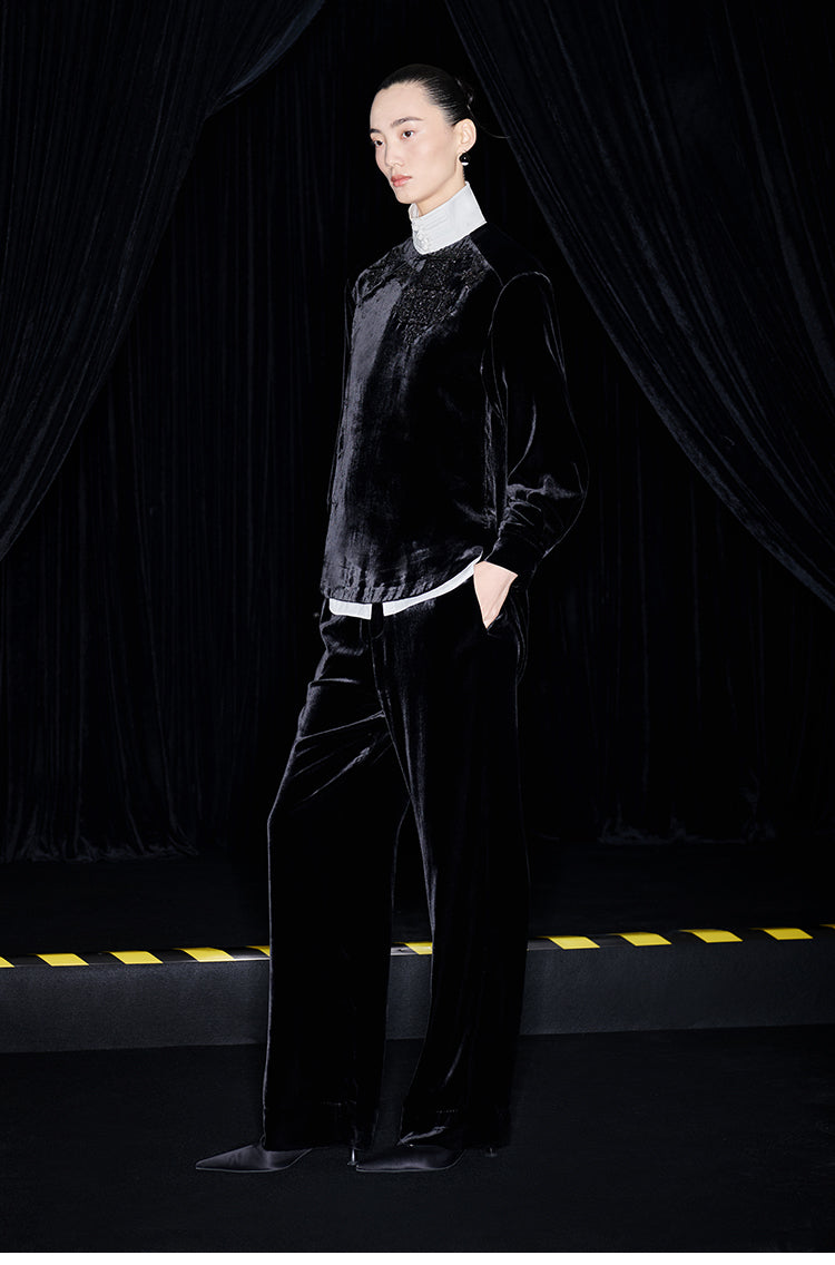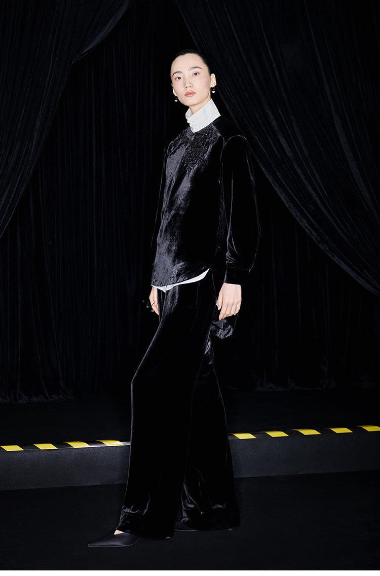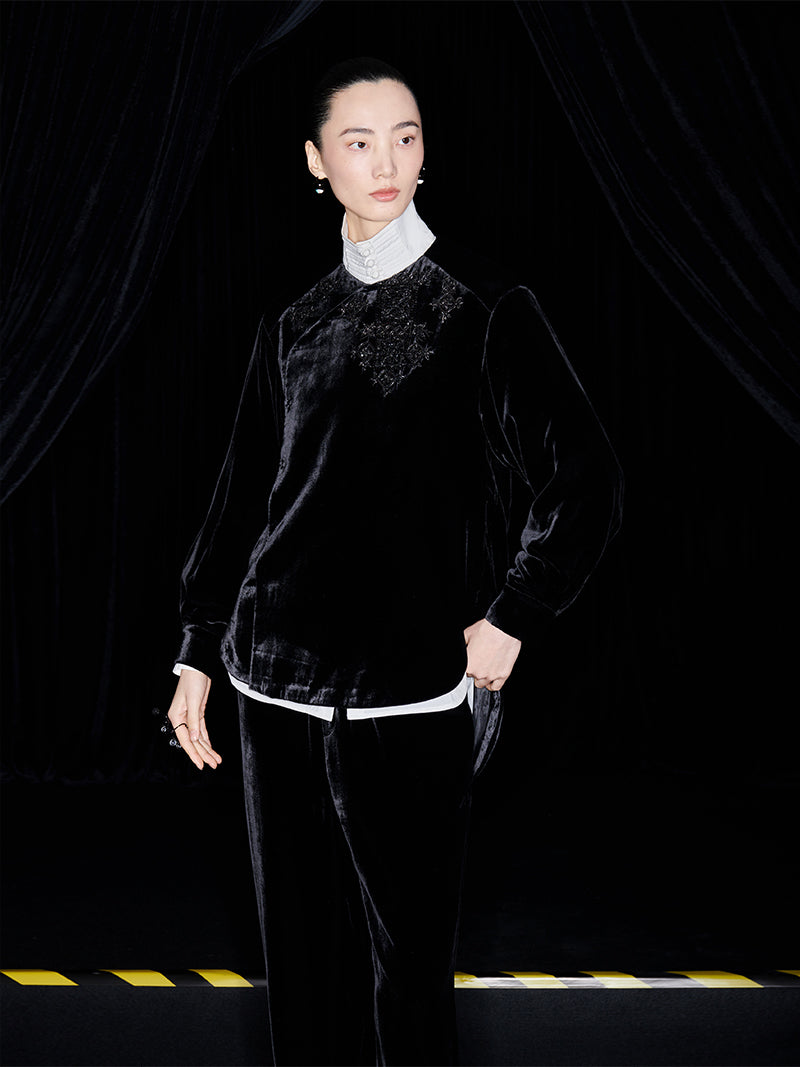 M essential Mackay designer Indian silk embroidered silhouette velvet top pant set- buck.