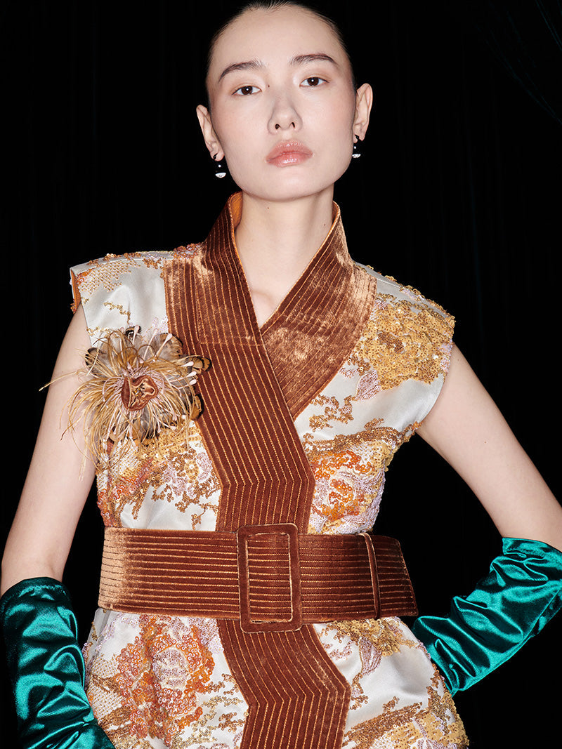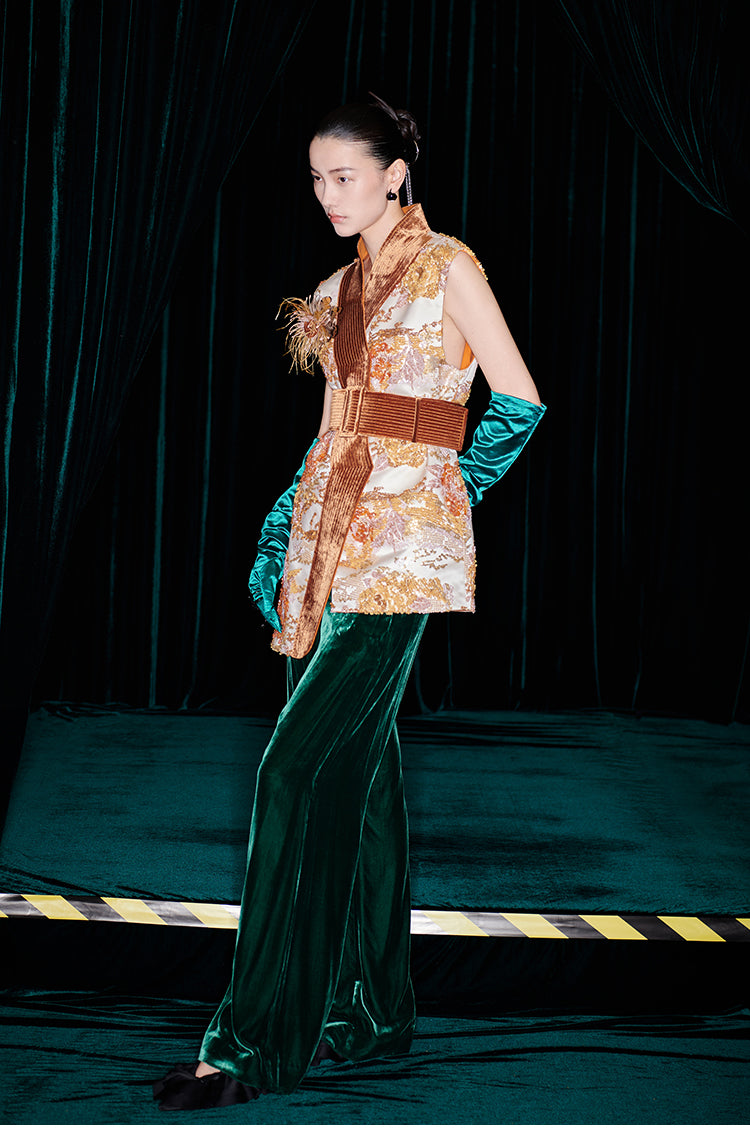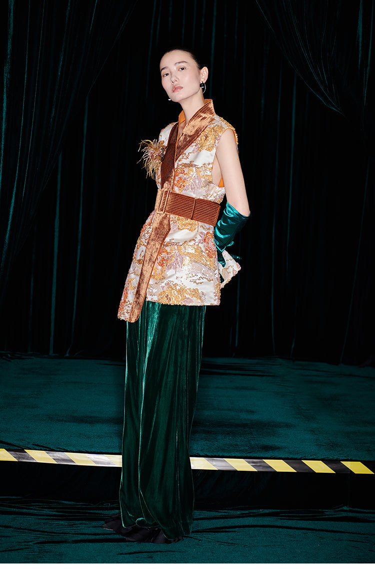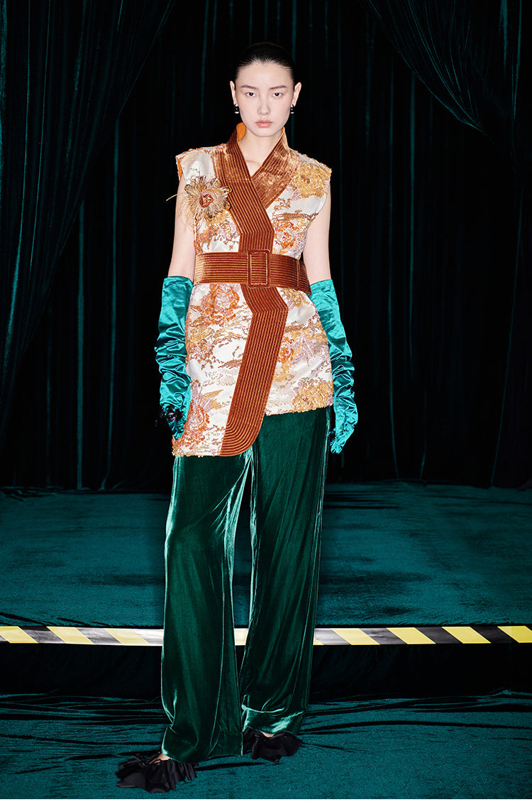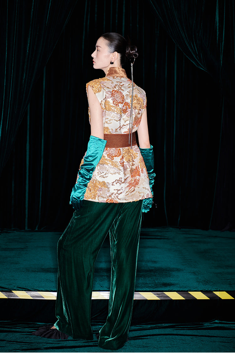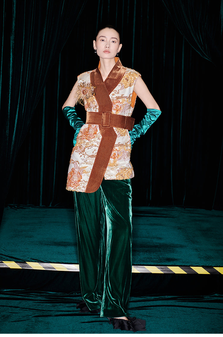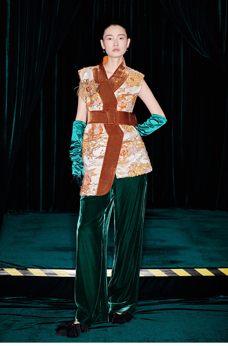 M essential Mackay designer quilted wide belt placket vest pant set- indira
