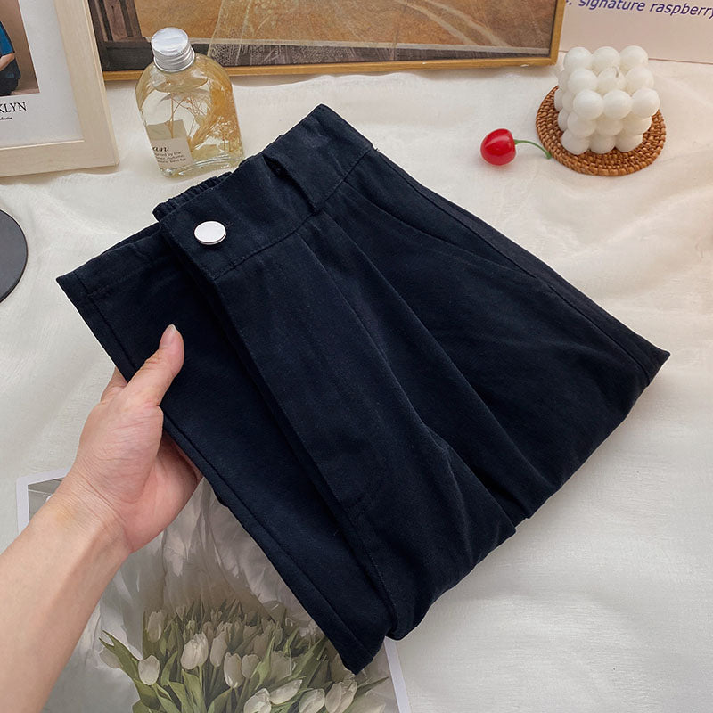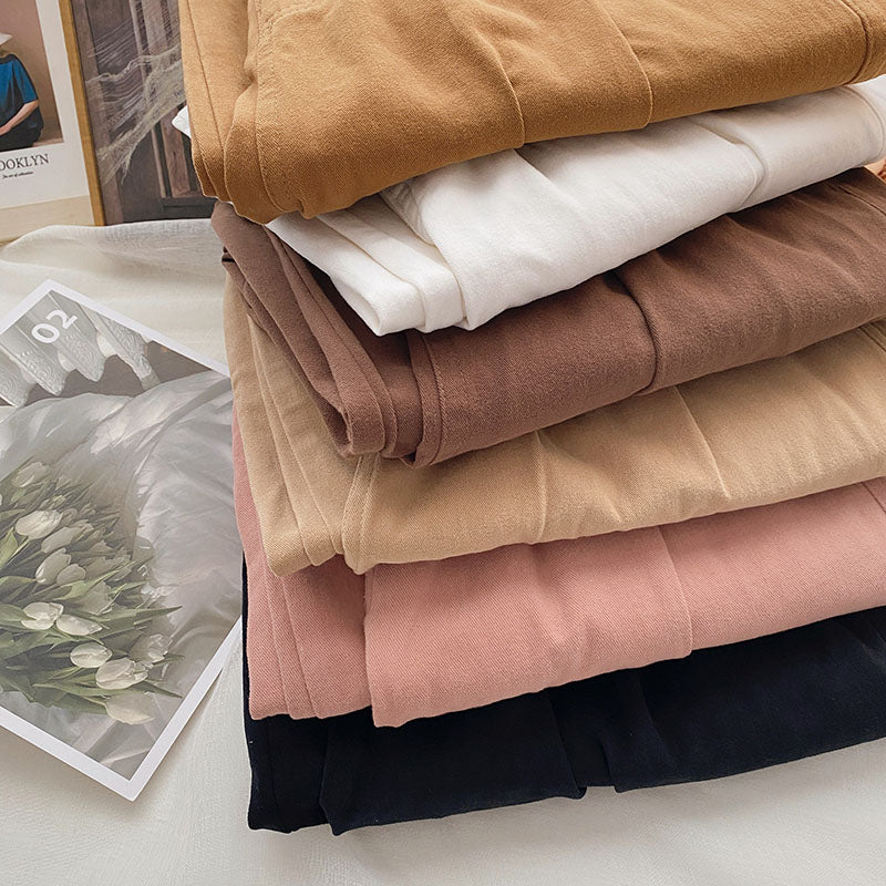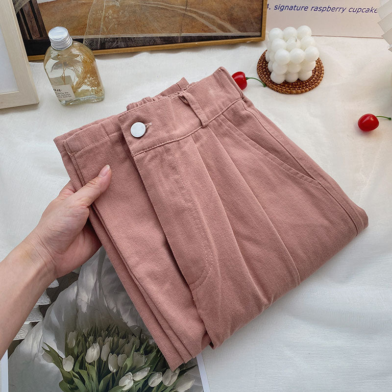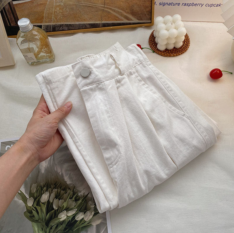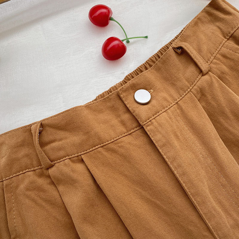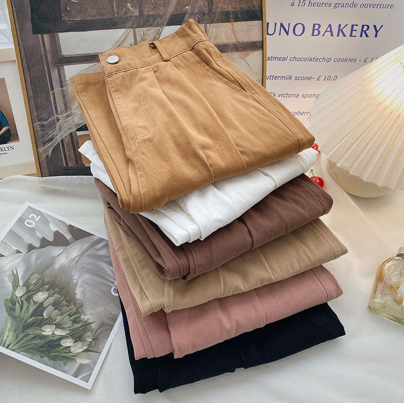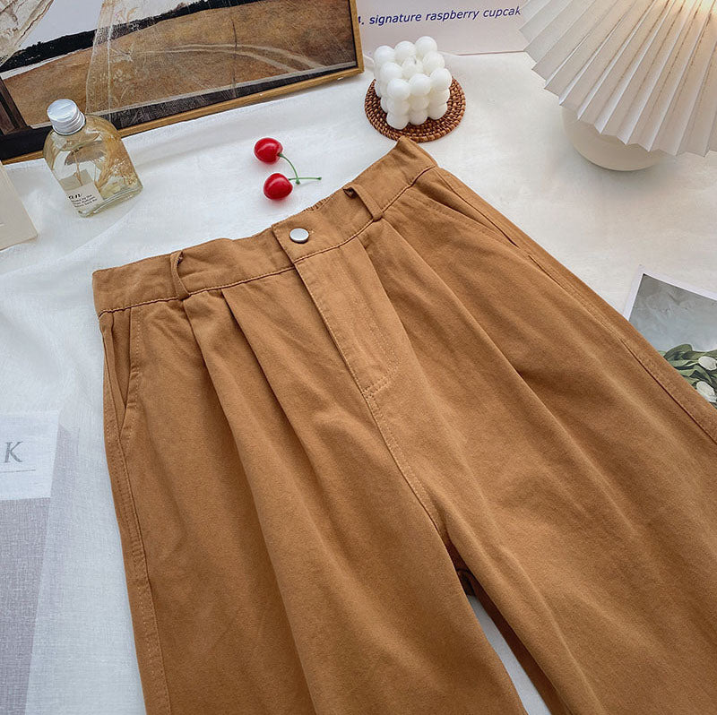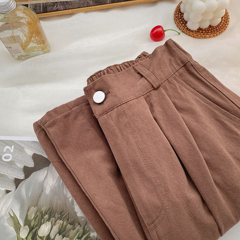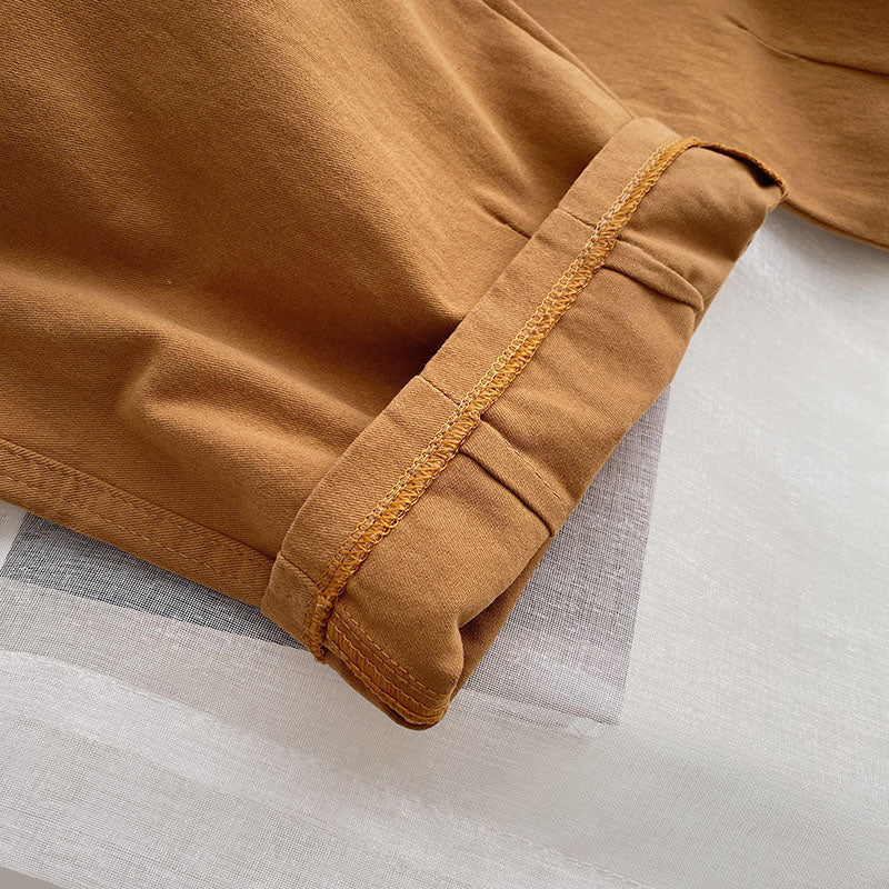 Comfy and relaxed cotton pants in versatile colors for everyday use, no matter the occasion. Button and zip up front with belt loops, side pockets, back pockets and elastic waist back. Slightly cropped.