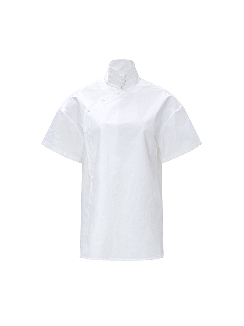 This M essential Mackay designer short jacket adds an elegant and stylish touch to any spring event. The plumped-shouldered stand-up collar and mid-sleeves provide a sophisticated look, while the matching long skirt and white shirt complete the outfit for a polished appearance.