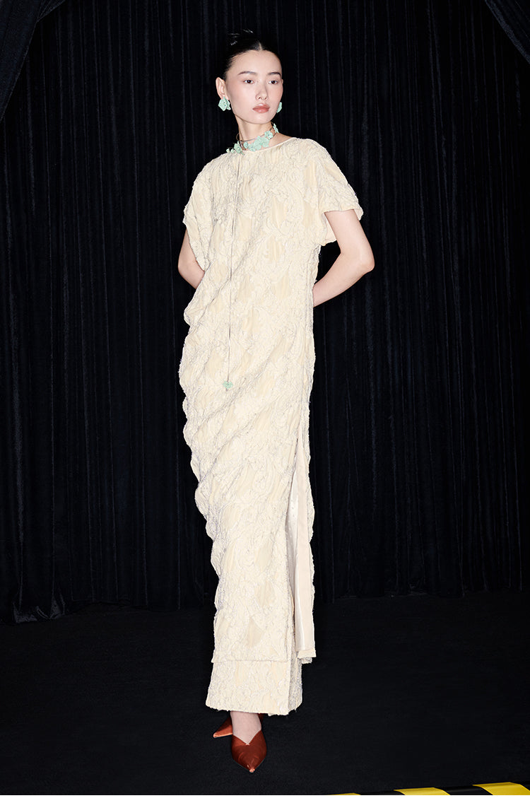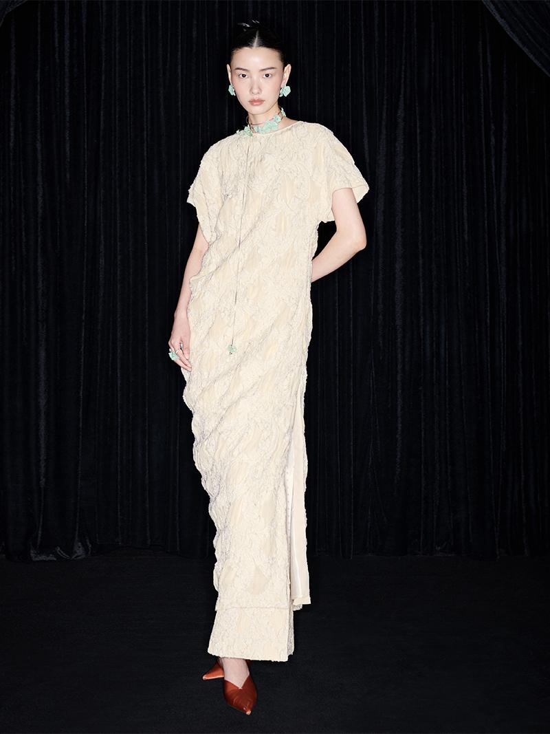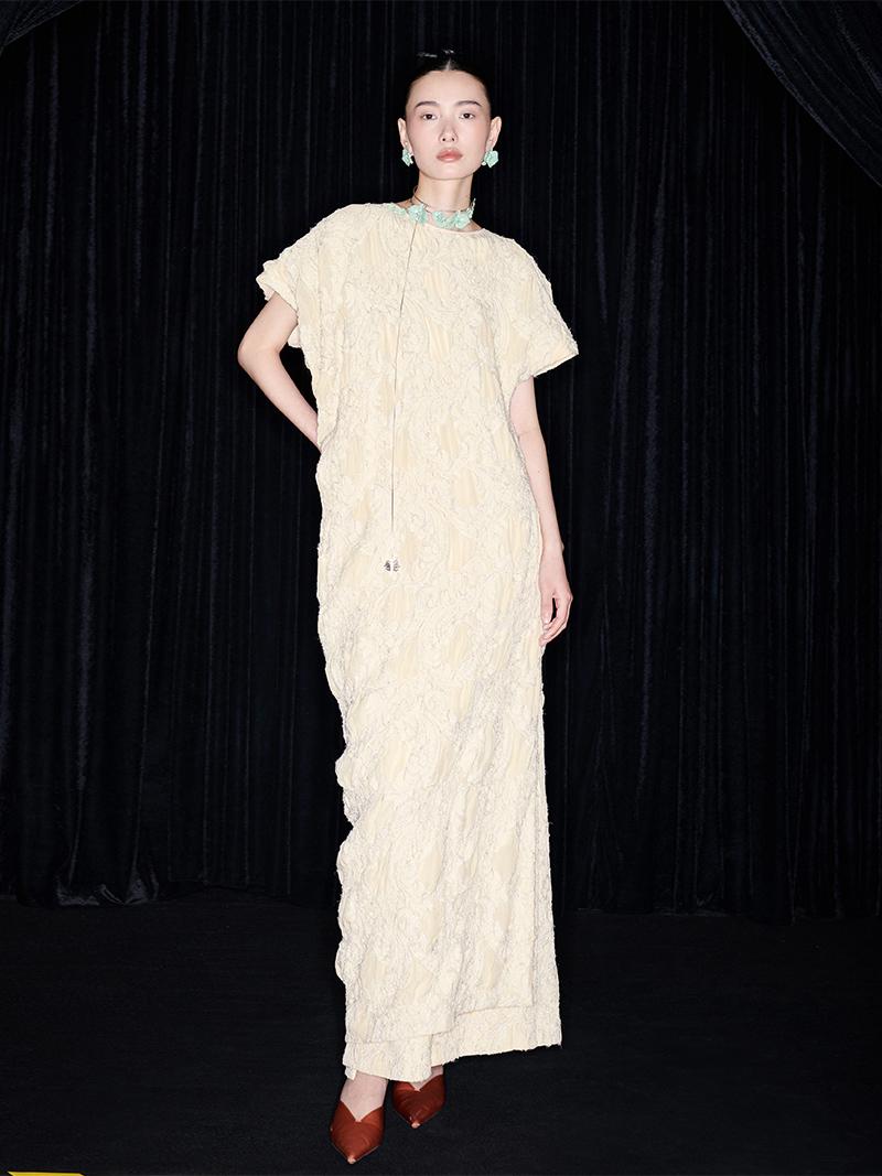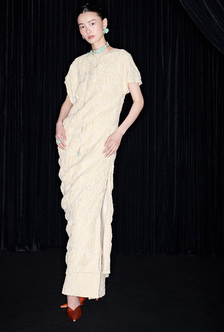 M essential Mackay designer Prima Jacquard irregularly cut short-sleeved dress - rebel.