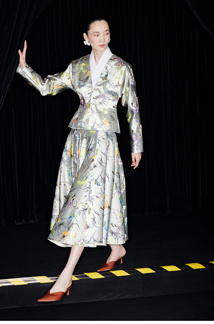 Elevate your autumn fashion with our M essential Mackay Butterfly Beaded Waist Short Jacket. This resplendent design is complemented by a white shirt and matching skirt for a chic and trendy event suit. Experience the excellence of luxury fashion with this elegant and fashionable piece.