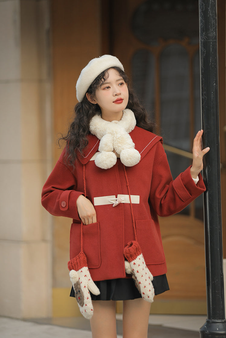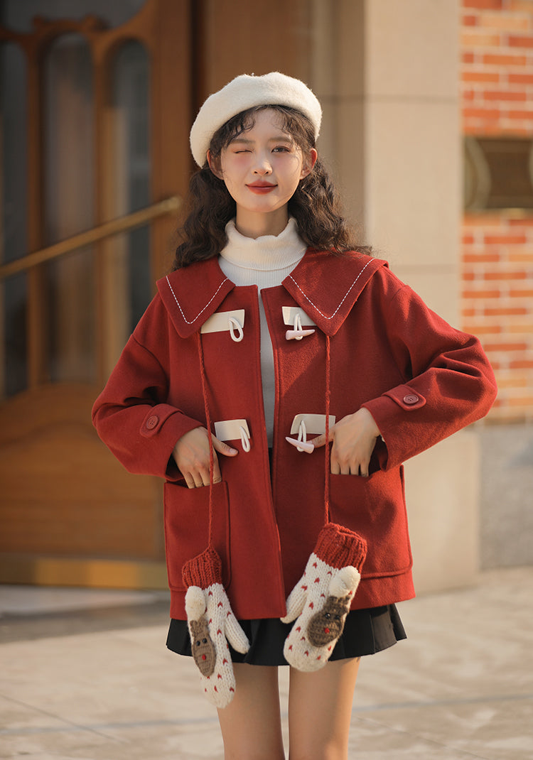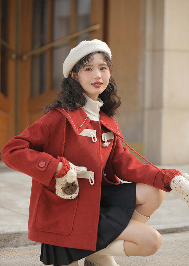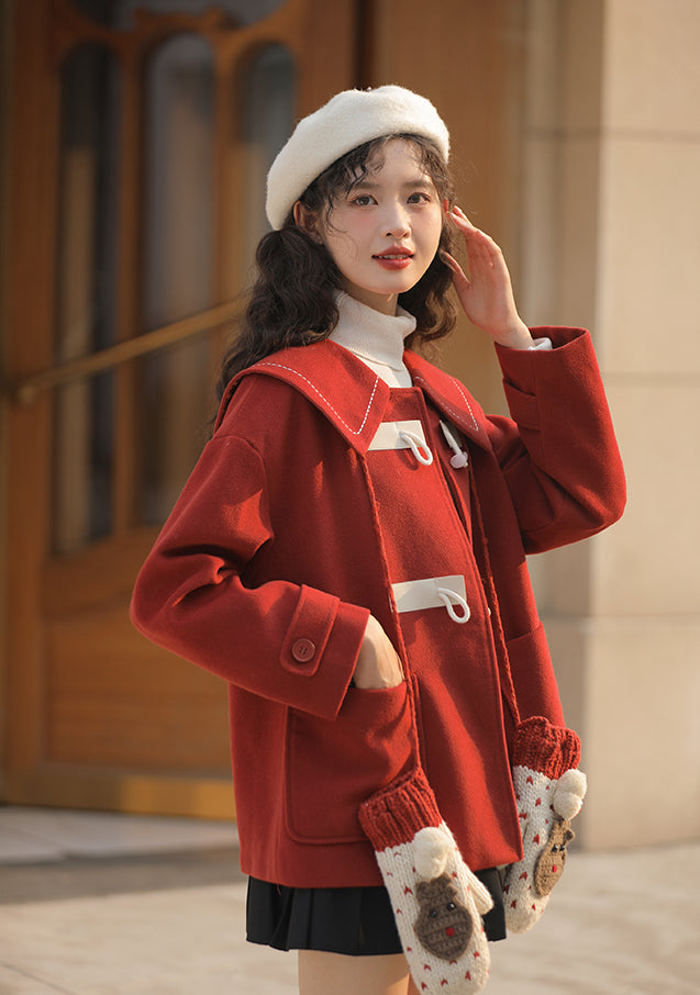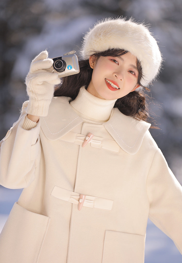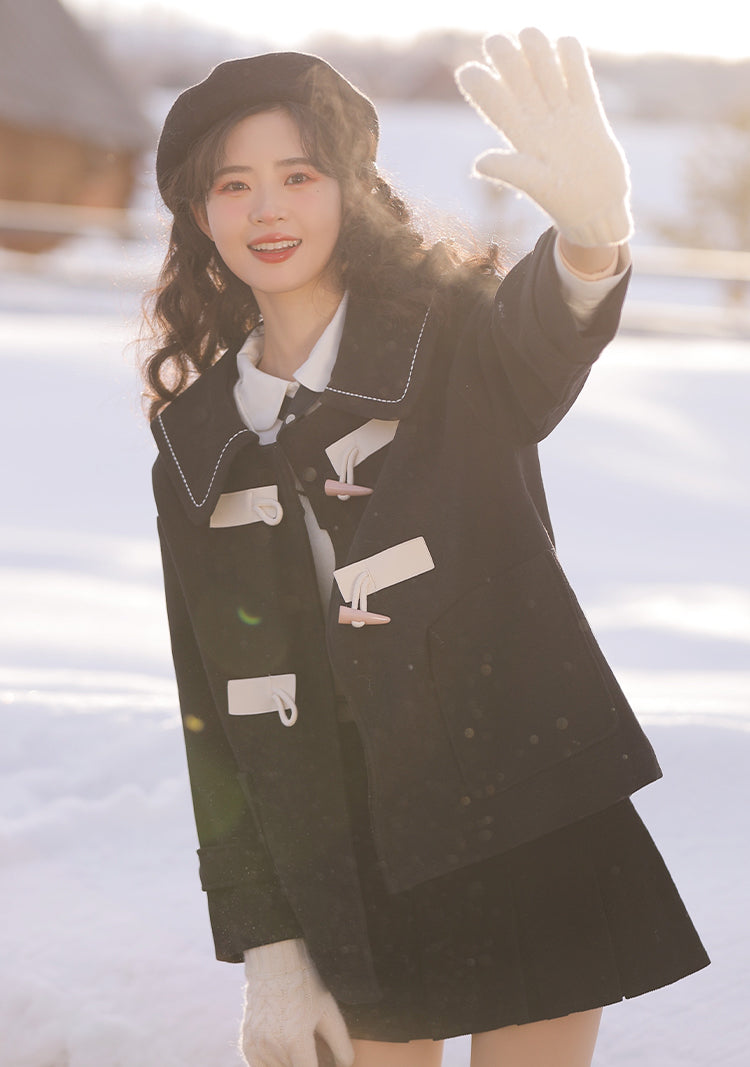 Oversized faux wool coat with an oversized peter pan collar, toggle buttons and large side pockets. Slightly padded lining for extra warmth.