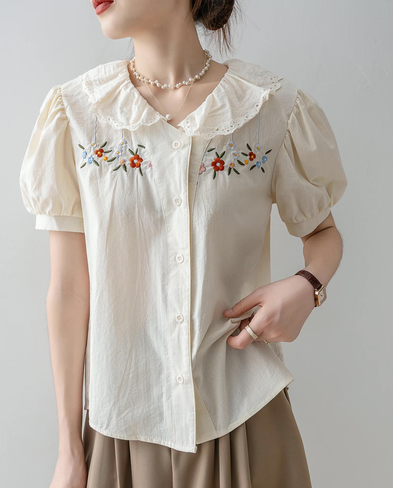 Falling Florals Short Sleeve Blouse (Cream)