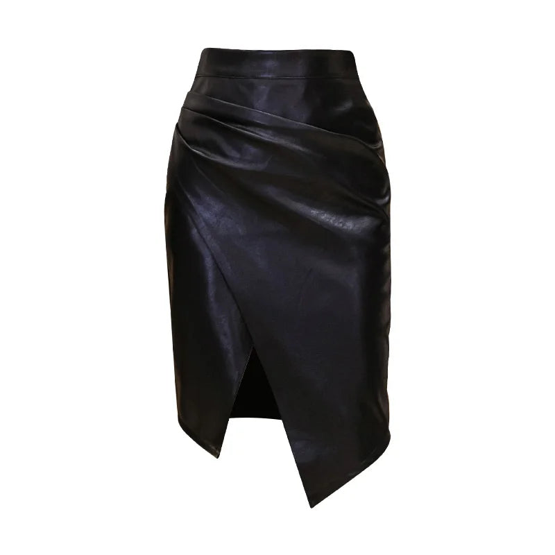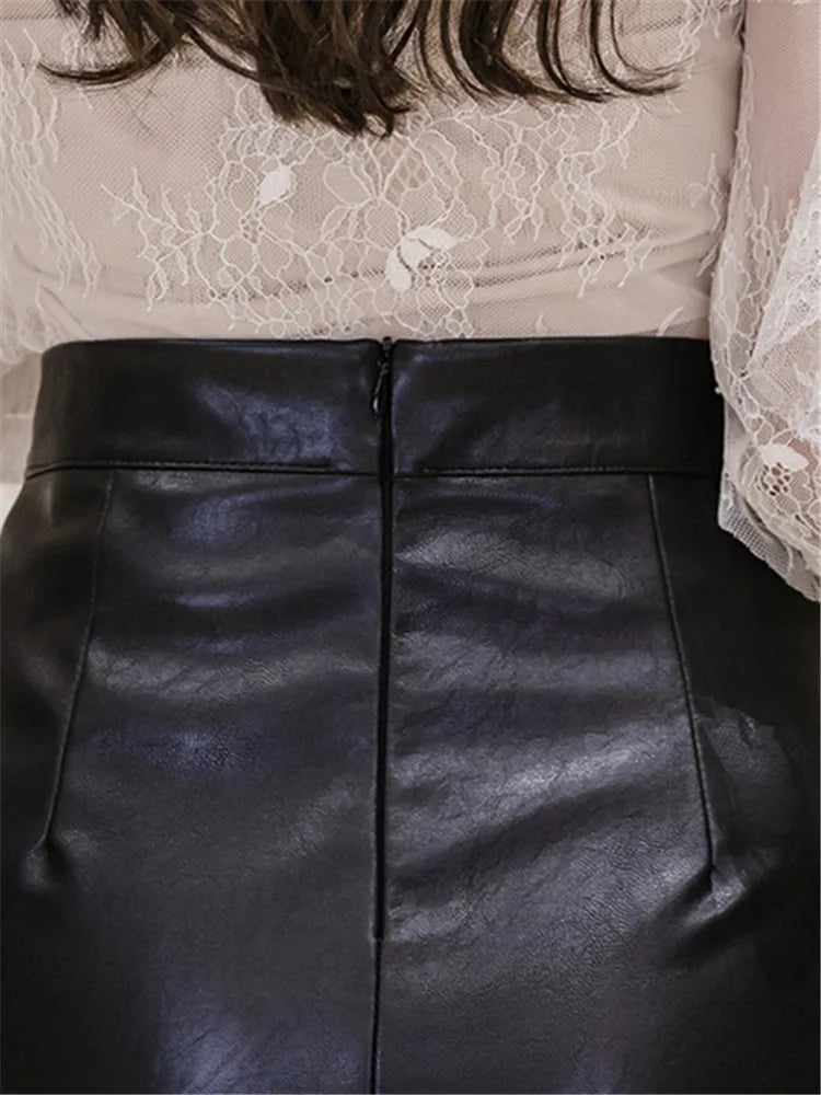 New PU Leather Office Lady High-Waist Slim Midi Skirt Bottom