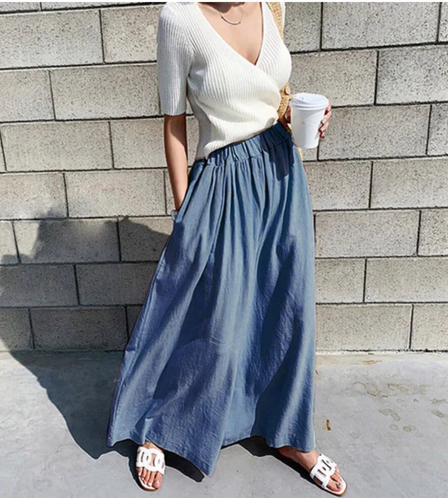 Long Skirts Women Denim Skirt Frayed Streetwear High Waisted Jeans Maxi Mujer Spring Summer Skirt