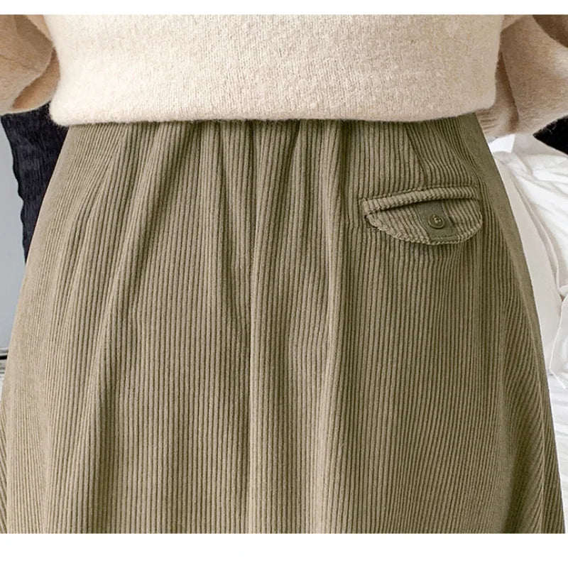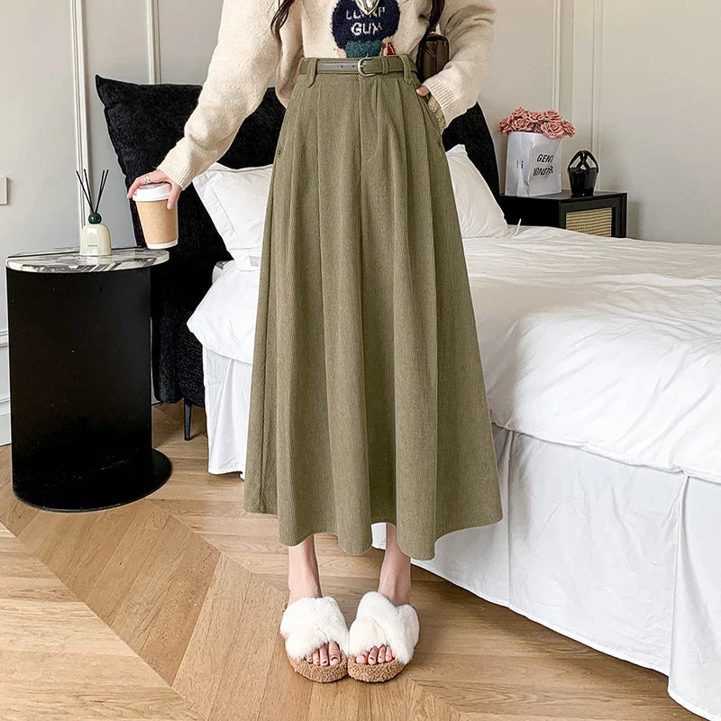 Season : Autumn/Winter Fabric Type : Corduroy Age : Middle Age Waistline : Empire Dresses Length : Mid-Calf Silhouette : Ball Gown Pattern Type : Solid Style : Casual Material : Polyester Gender : Women Fit Type : Loose Fit