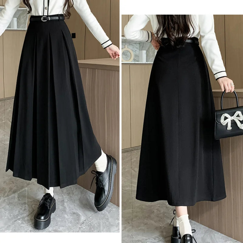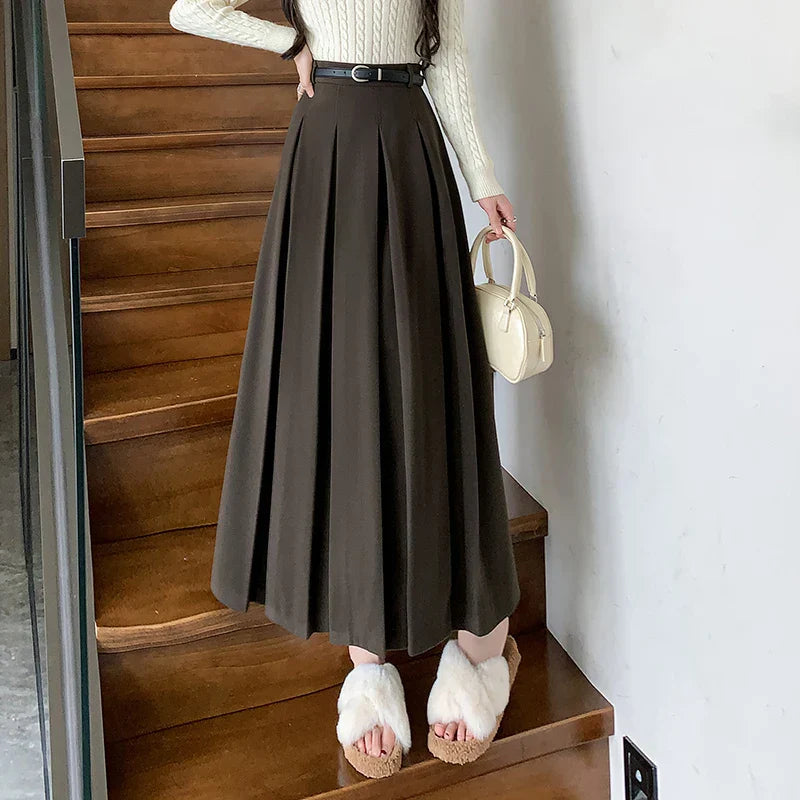 Season : Autumn/Winter Fabric Type : Woolen Age : Middle Age Waistline : Empire Dresses Length : Mid-Calf Silhouette : Pleated Pattern Type : Solid Style : Office Lady Material : Polyester,Wool Gender : Women Fit Type : Loose Fit