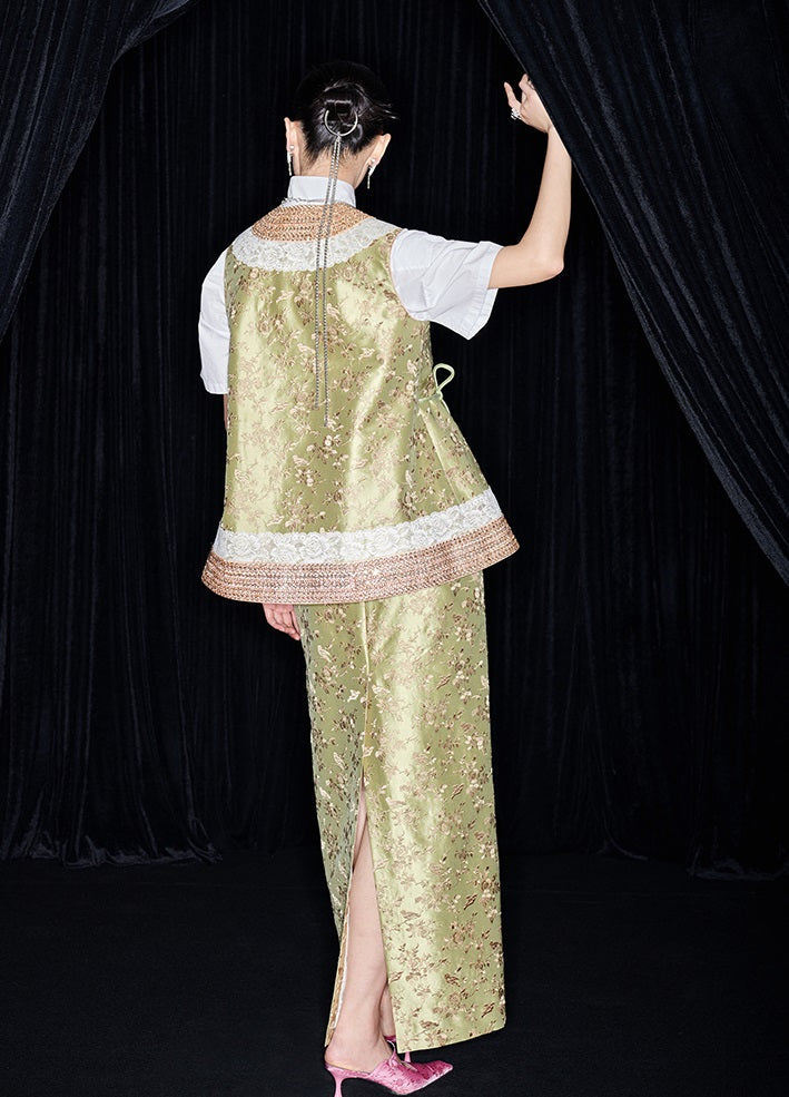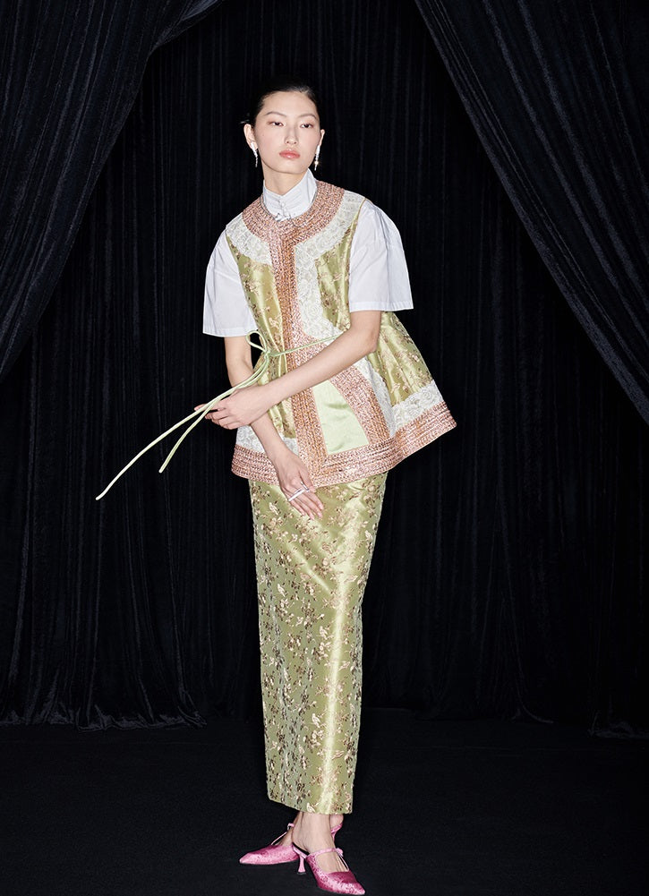 M essential Mackay designer colour-block placket vest pencil skirt- Victoria.