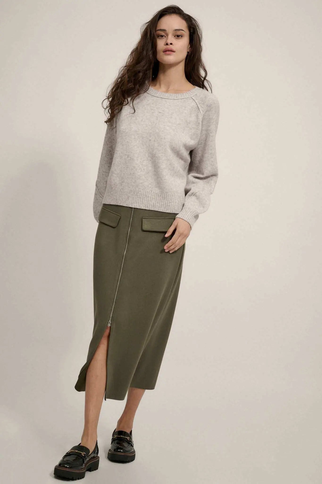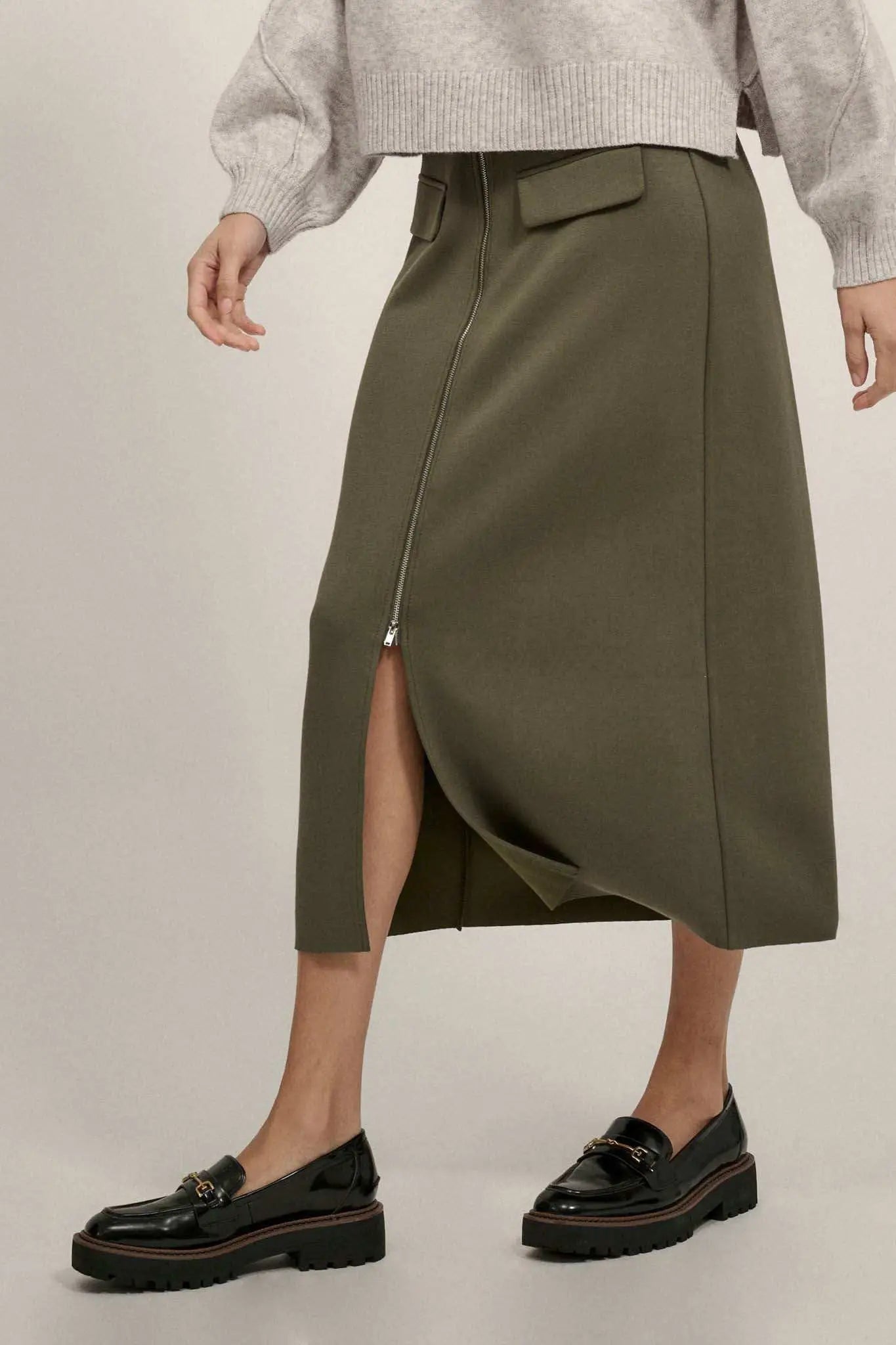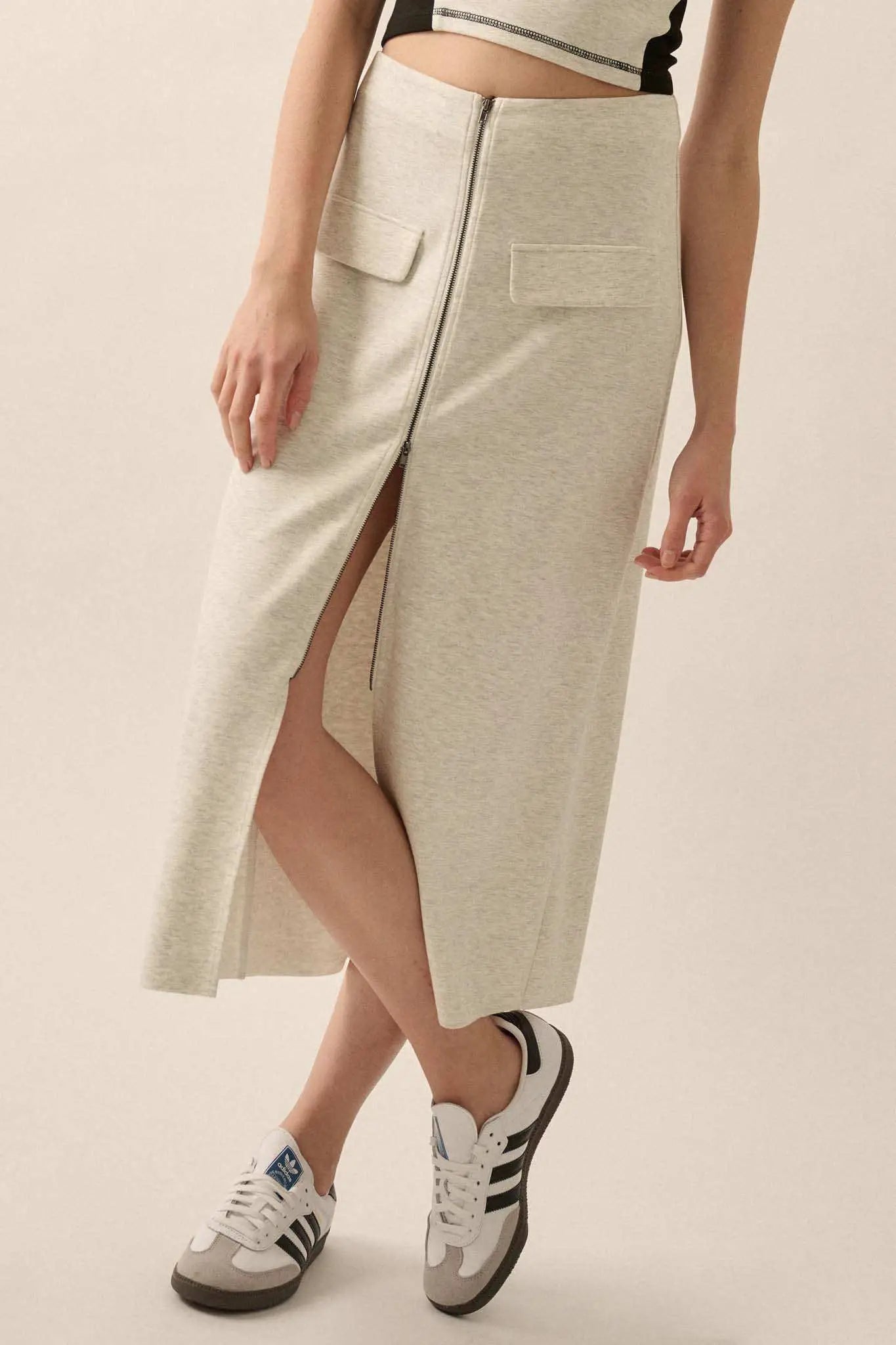 Premium Scuba Zip-Front Midi Skirt - ShopPromesa