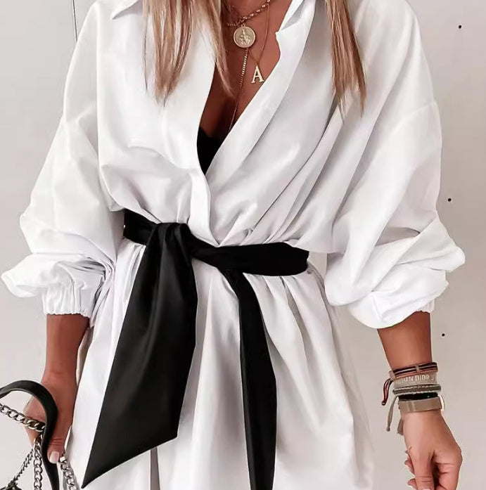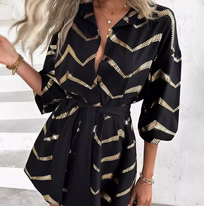 Women's Clothing Temperament Printed Long Sleeve Shirt Skirt