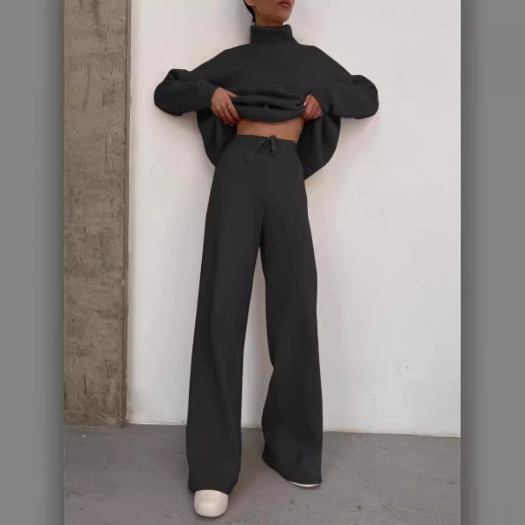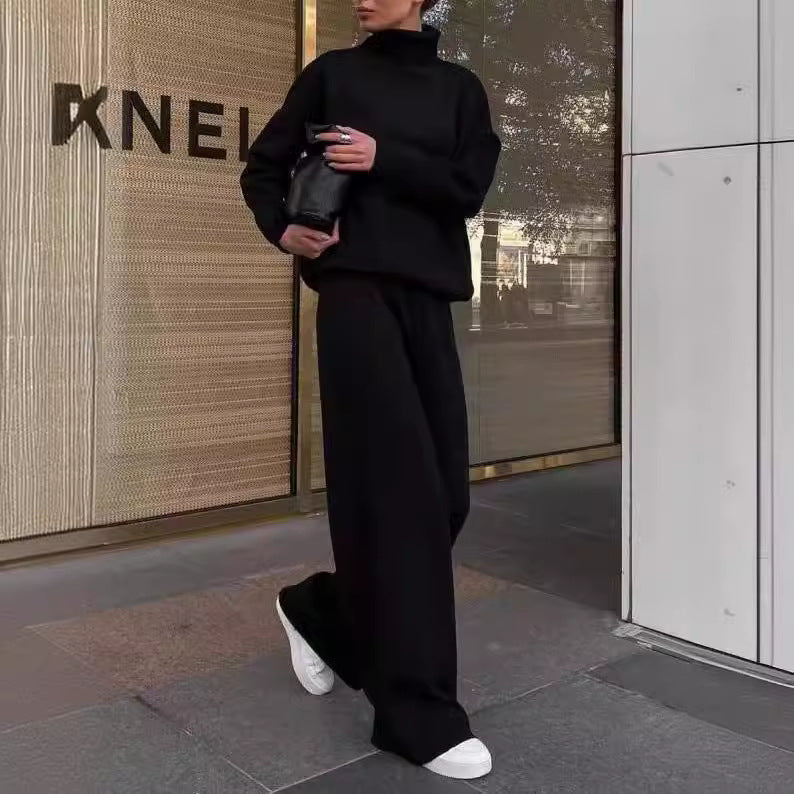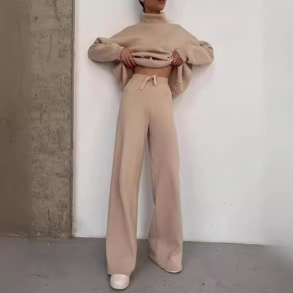 2025 Spring Autumn AliExpress New Knitted Solid Color Loose Casual Two-Piece Set Suit
