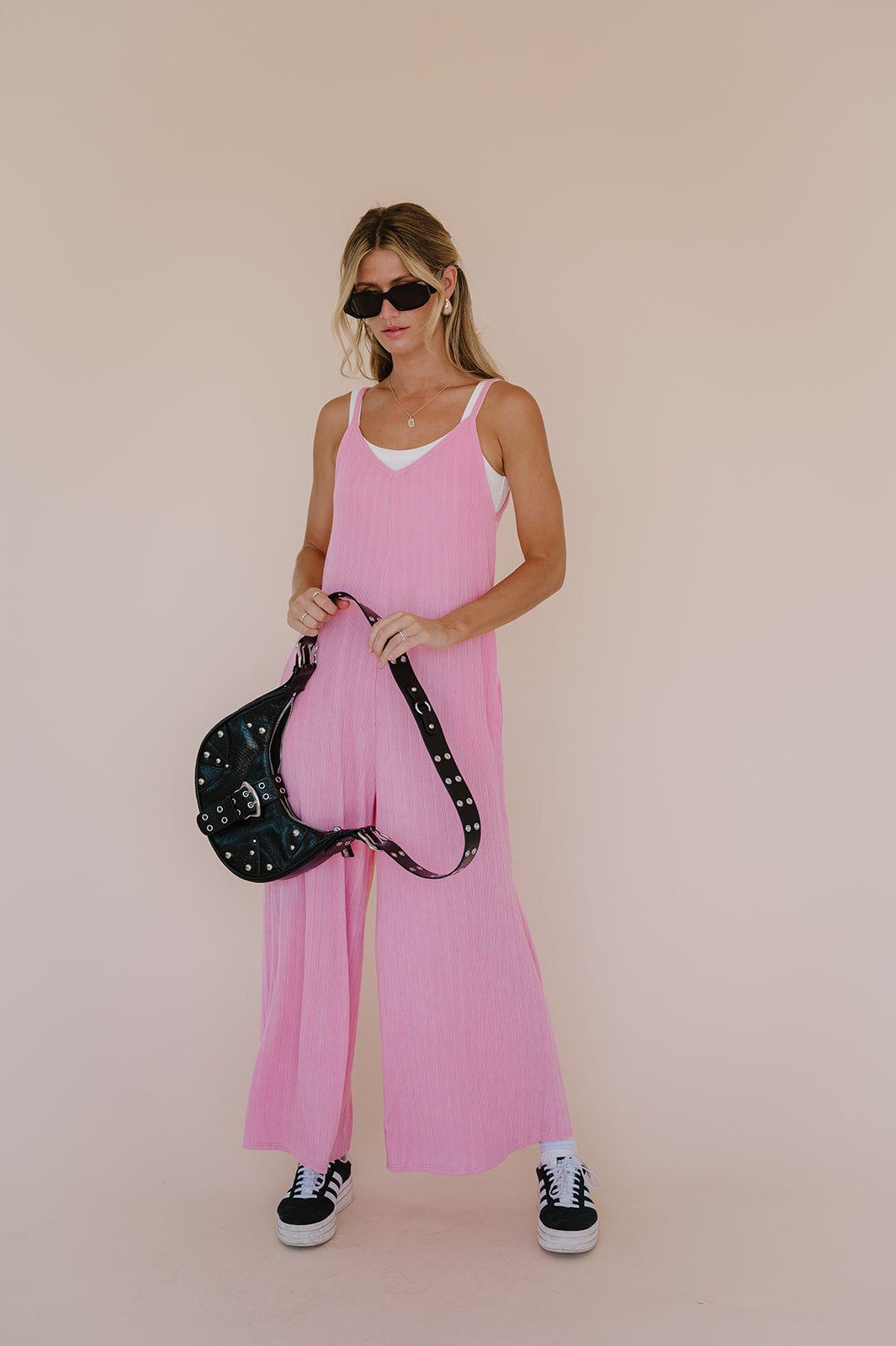 Everyday Ease Ribbed Jumpsuit// Barbie Pink