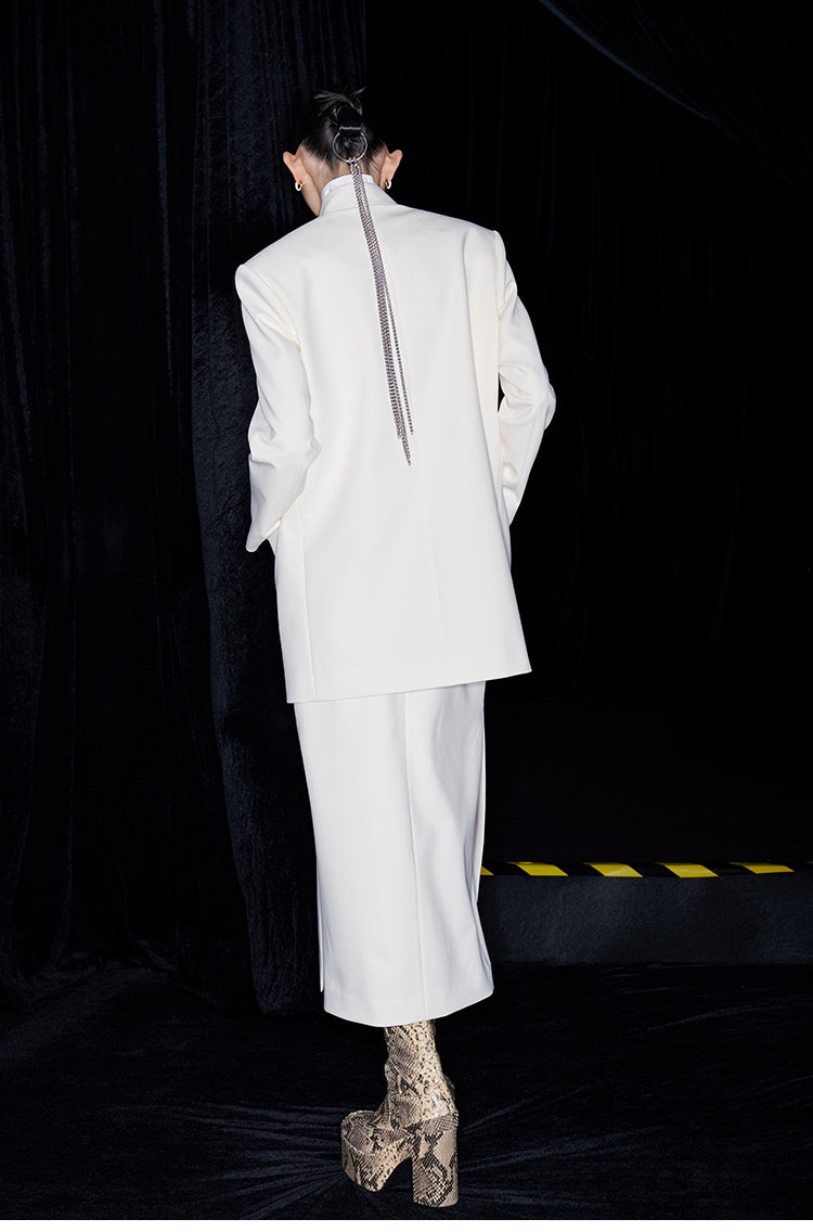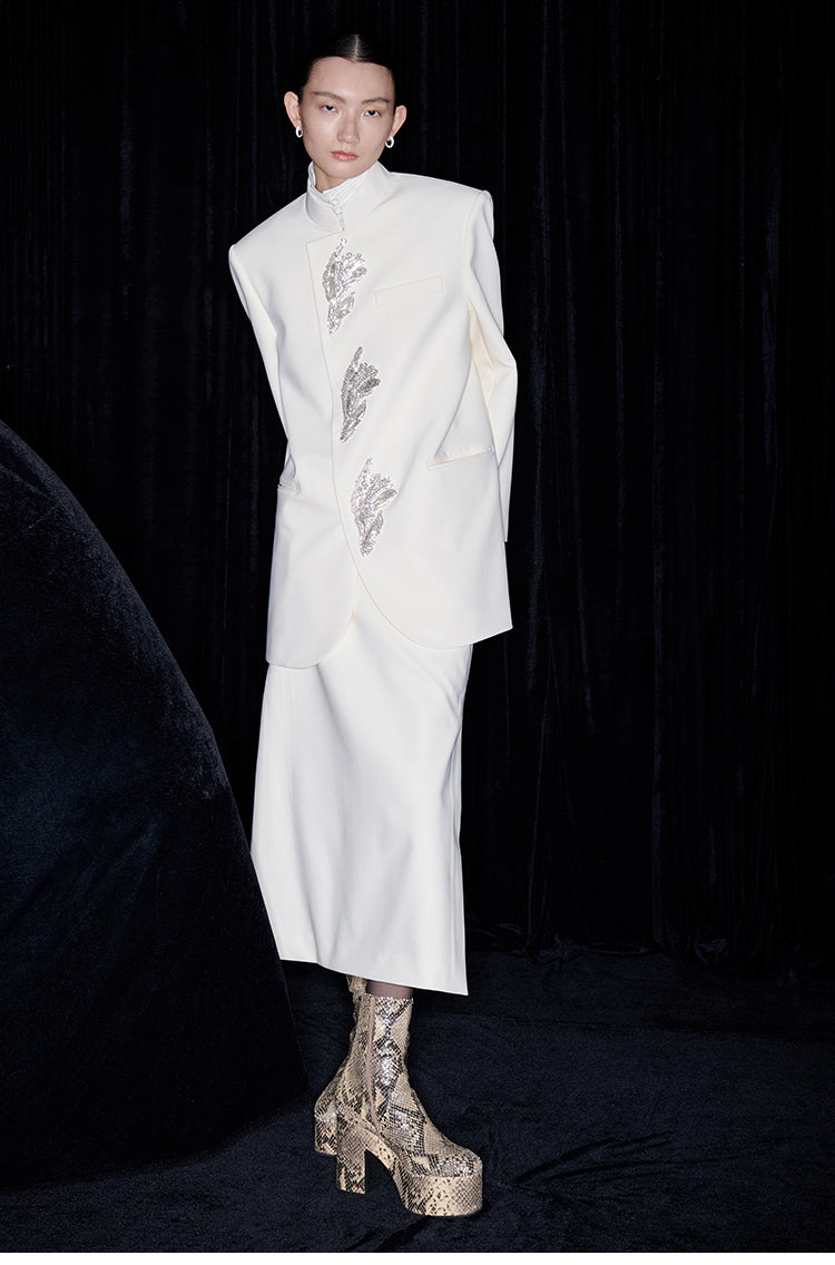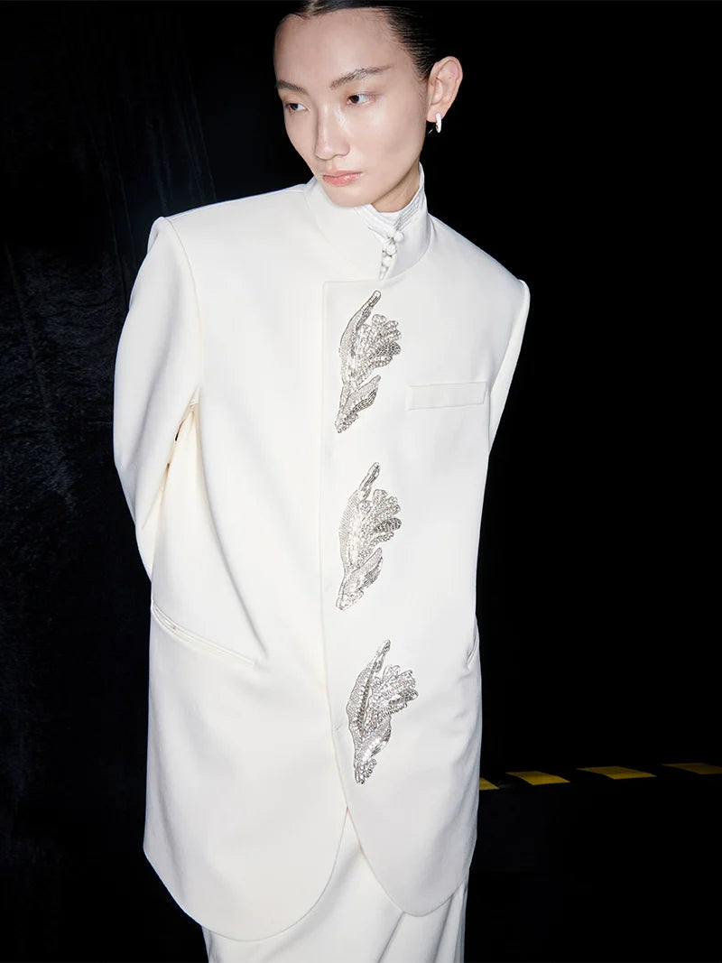 M essential Mackay designer Jiayang twill iris beads new Chinese silhouette suit - about.