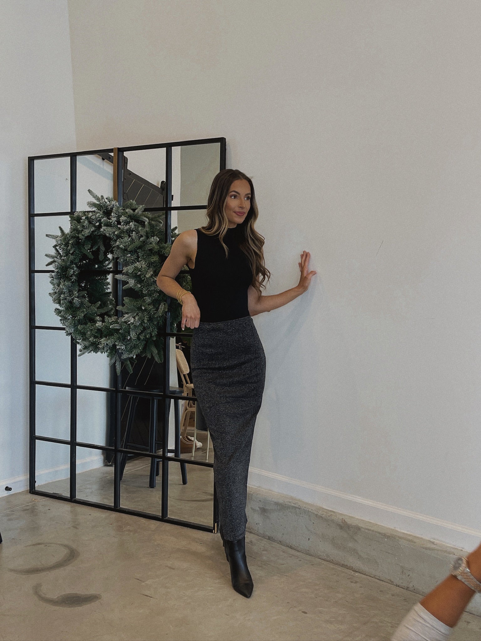 Our Bell Turtleneck Tank Knit Bodysuit is fitted and with a high neck. This bodysuit is a knit material with a snap button closure on the bottom and can be worn with a cute jacket overpiece and jeans! It is the perfect basic to have in your closet.