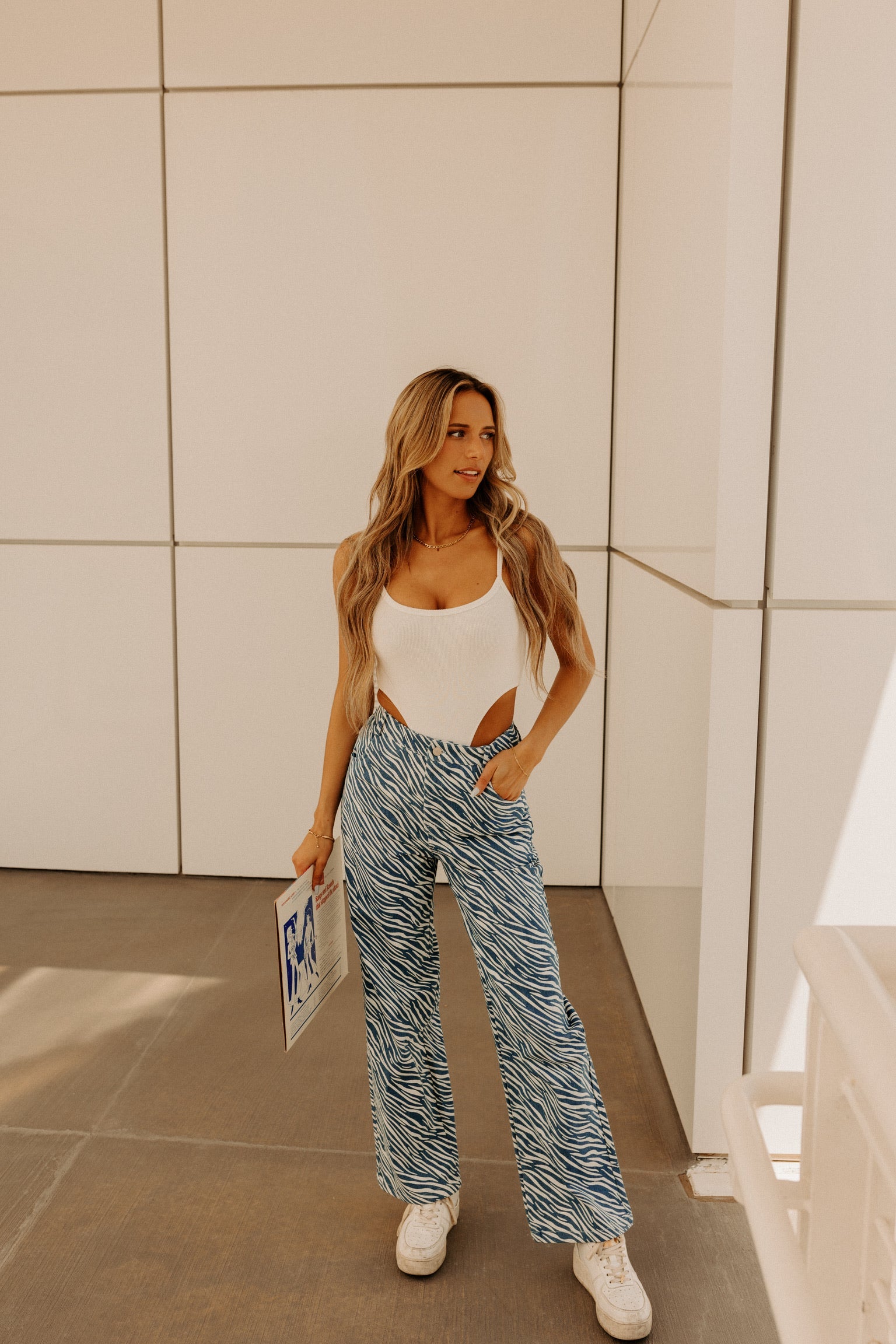 Our Eden Cut Out Bodysuit has a ribbed fabric. This bodysuit has a highcut detail. There is a snap button closure on the buttom. These would look cute with ANY bottom.