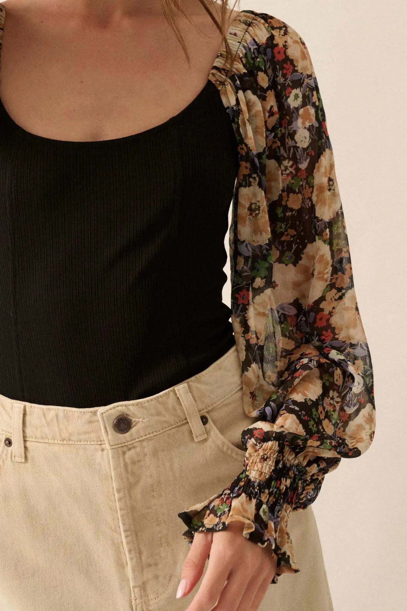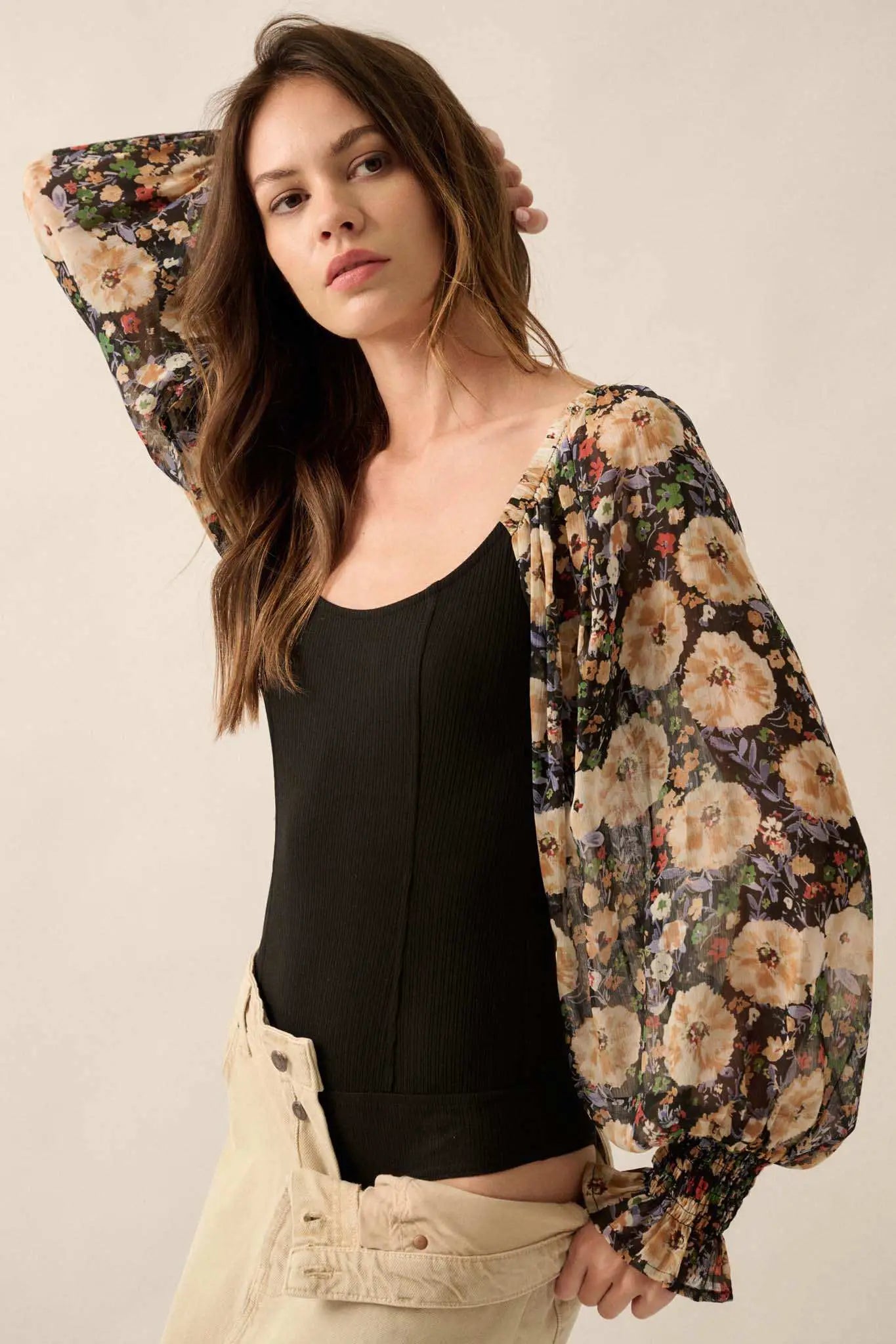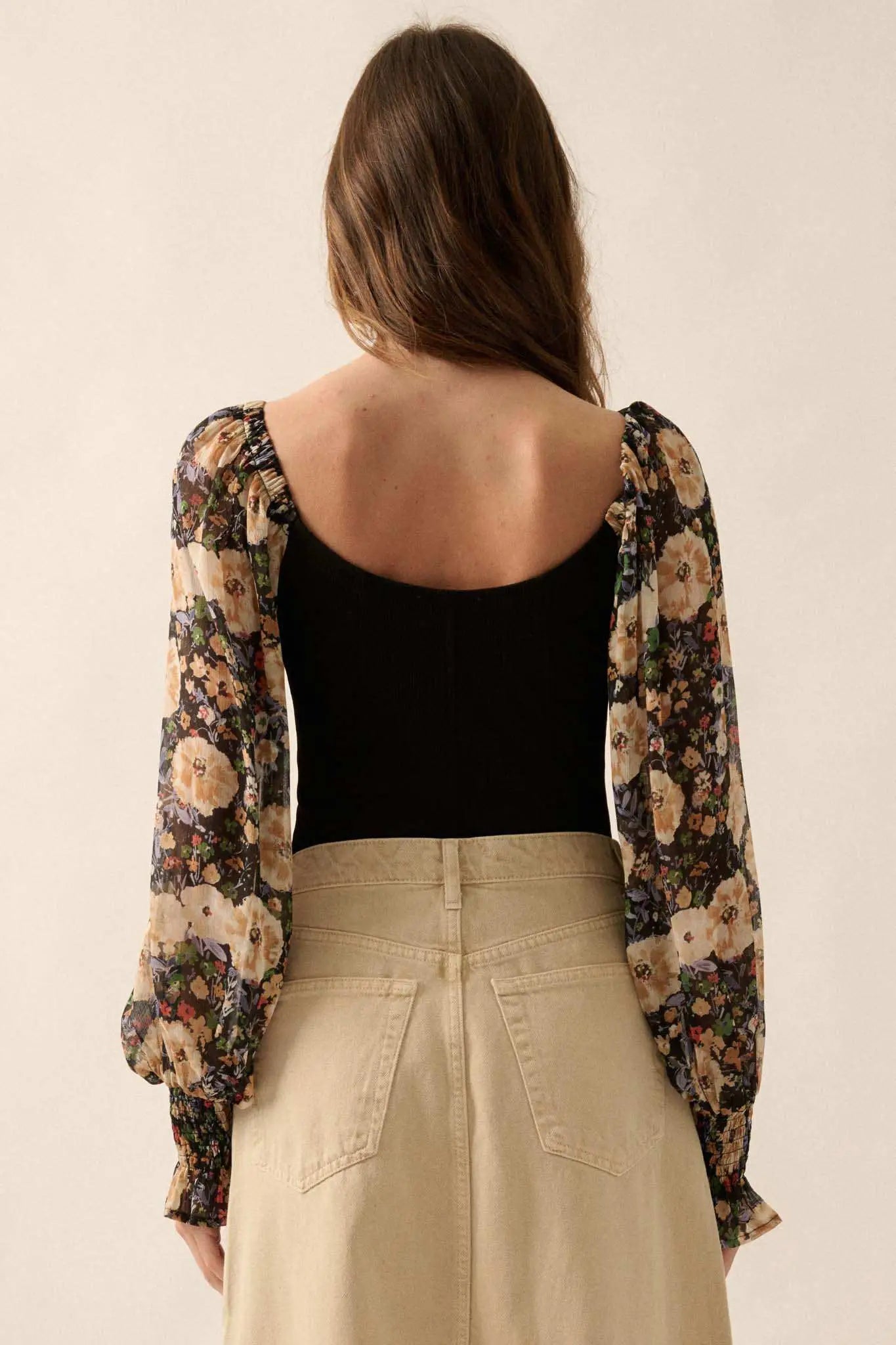 Bright Harvest Floral Balloon-Sleeve Bodysuit - ShopPromesa
