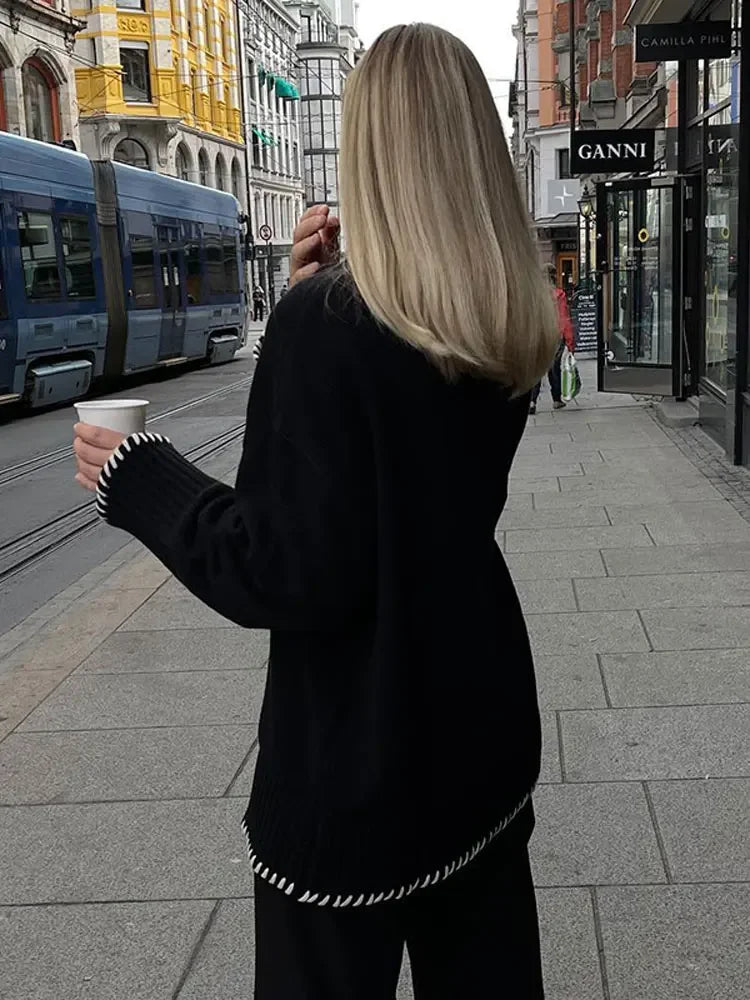 Autumn Women Patchwork Turtleneck Fashion Casual Long Sleeve Knitted Sweater