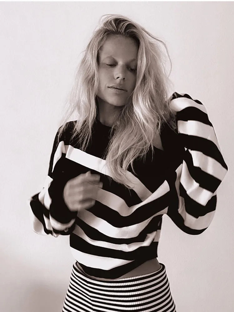 Black White Striped Irregular Collar Off Shoulder Pullover Women Long Sleeve Sweater