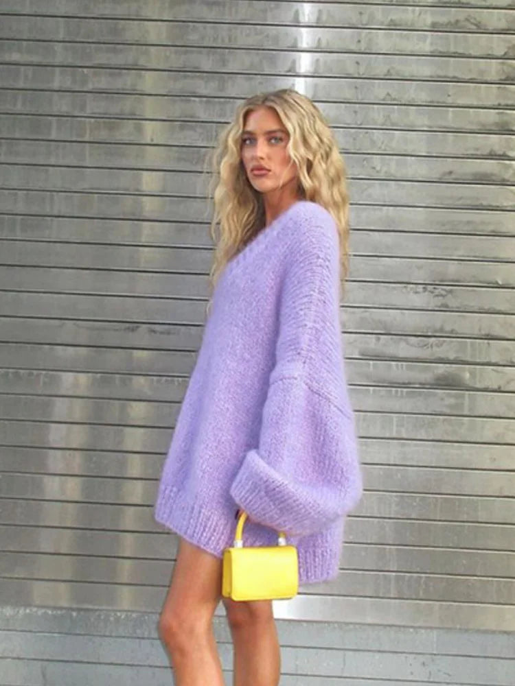 Purple Lantern Long Sleeve Oversized Jumper Top Women Fashion V Neck Sweater