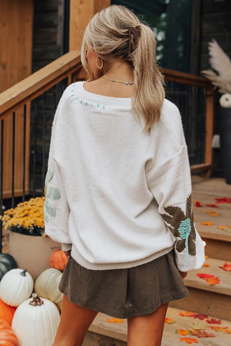 2025 Autumn New V-neck Casual All-match Floral Print Warm Knitted Sweater