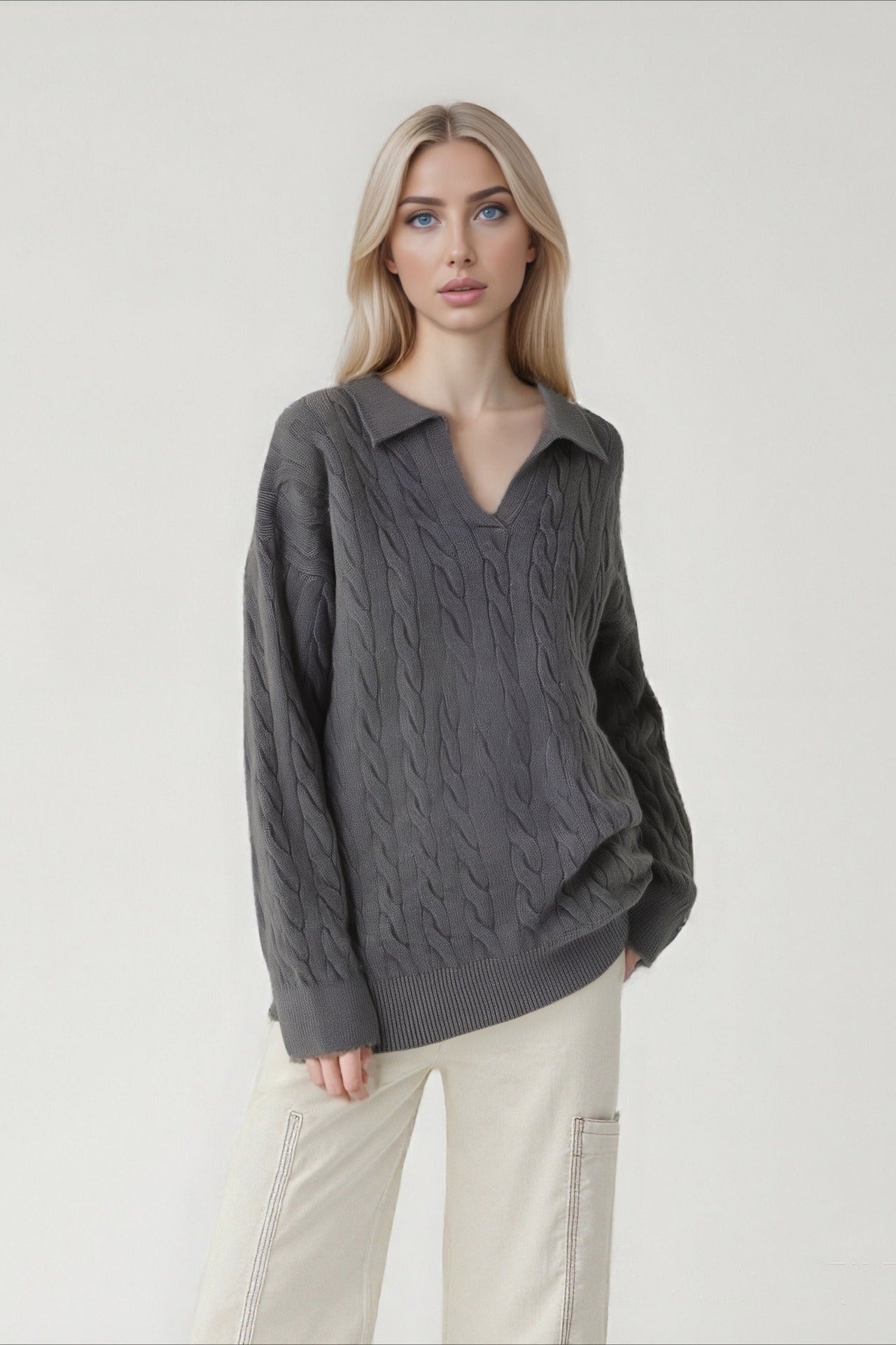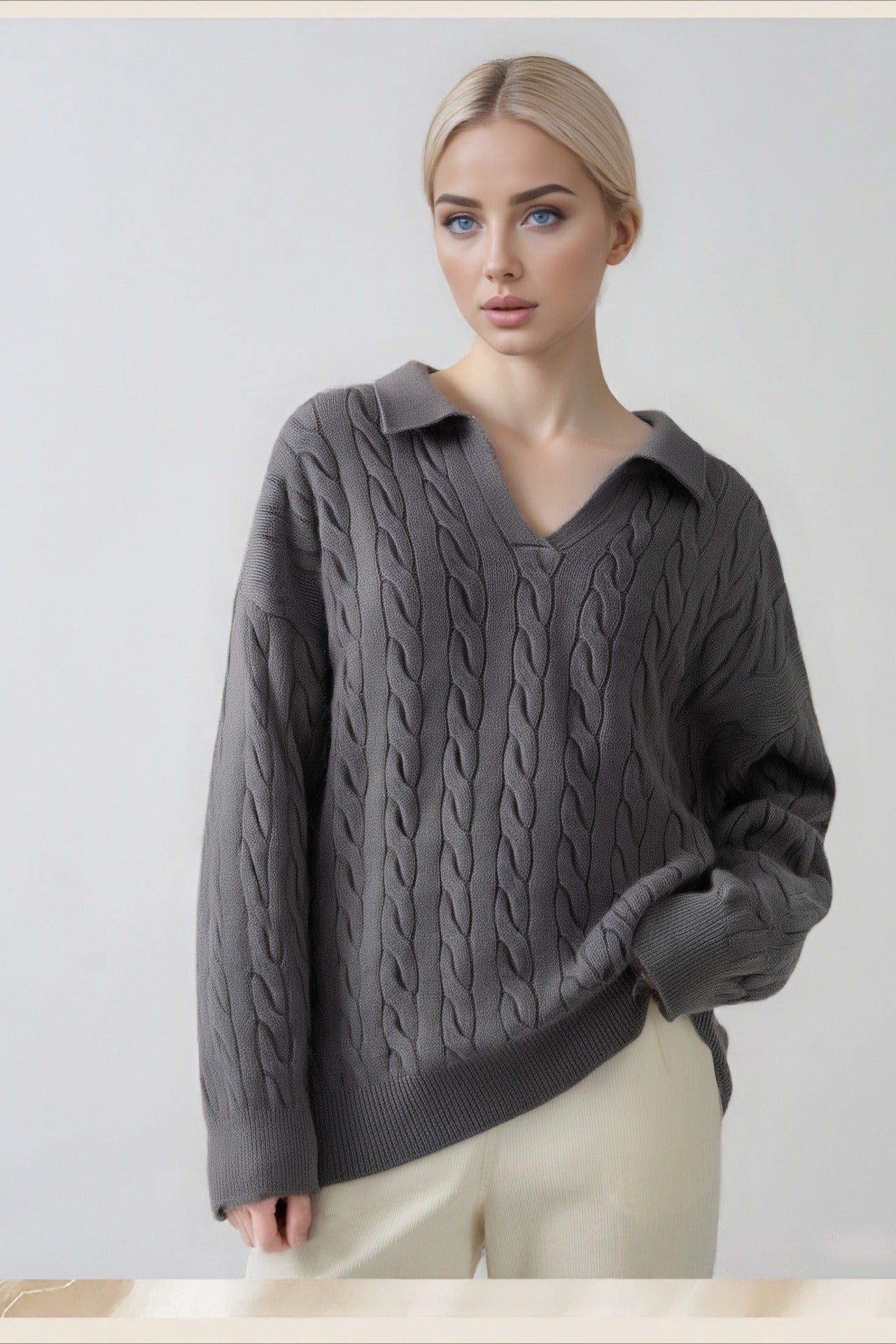 Vintage Polo Neck Cable Sweater