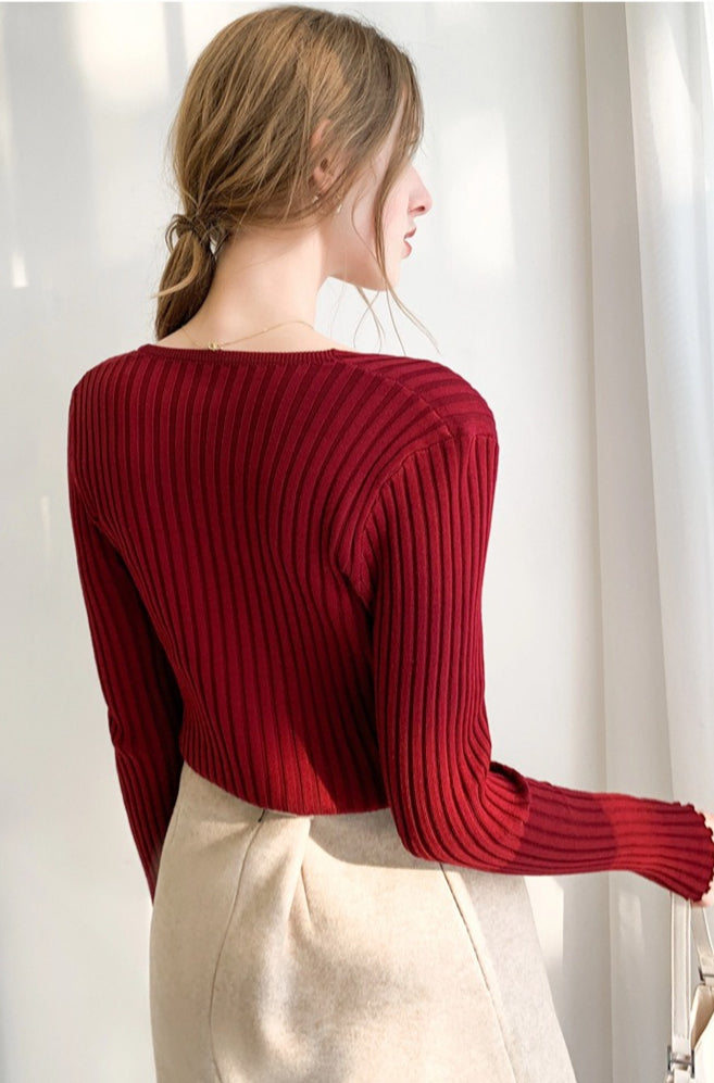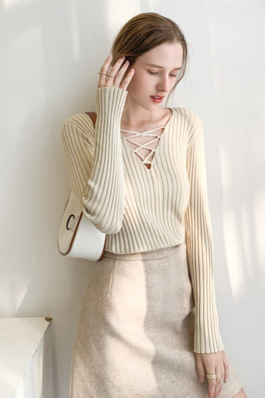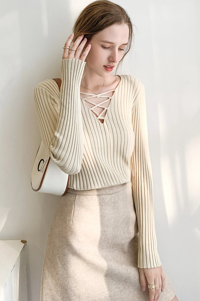 Slim Fit Lace Up V Neck Sweater