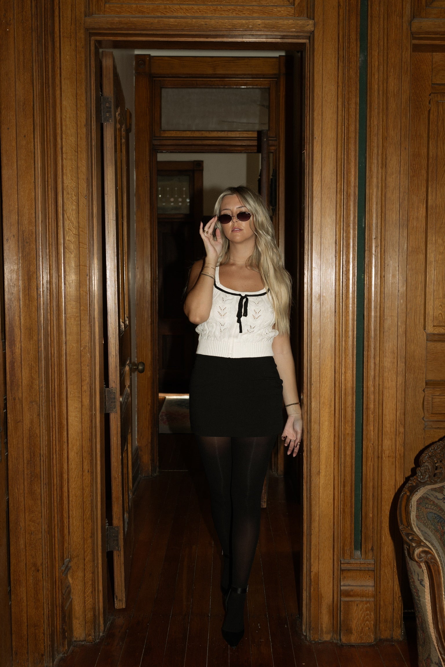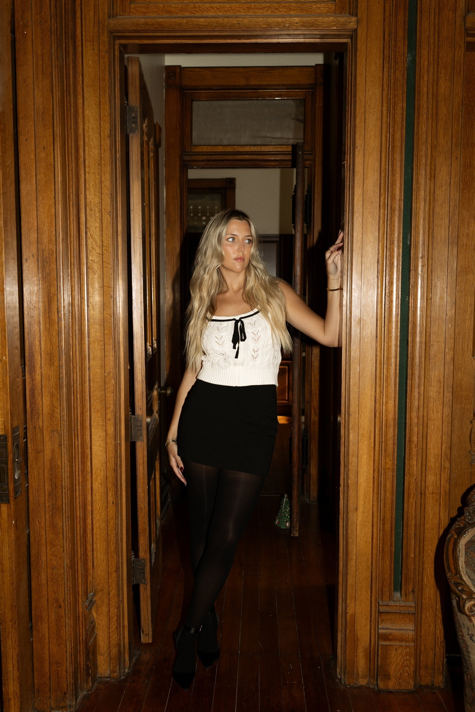 Embrace feminine style with our Square-Neck Bow Sweater Top. Features delicate cable knit, contrast black bow detail, and flattering cropped length.