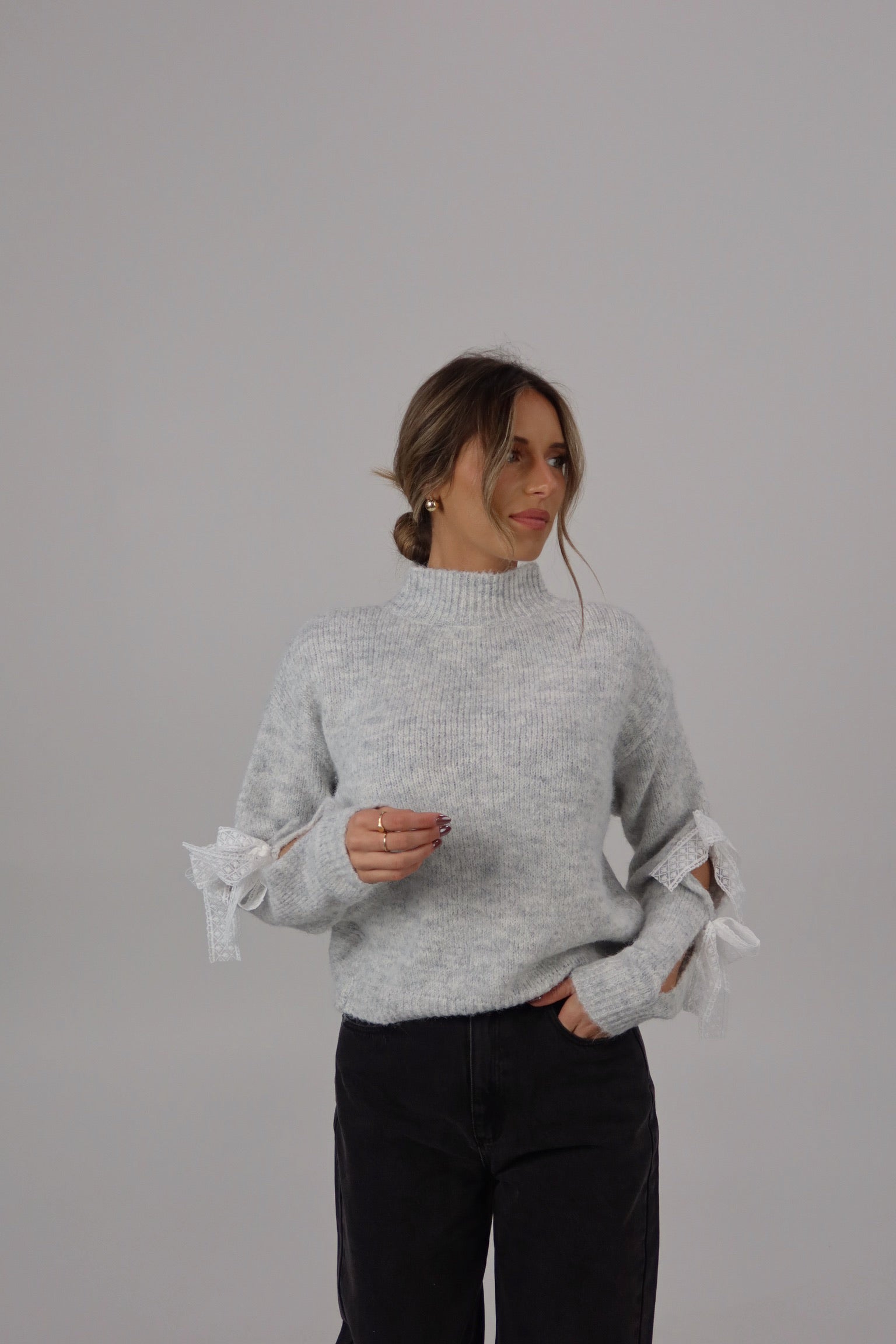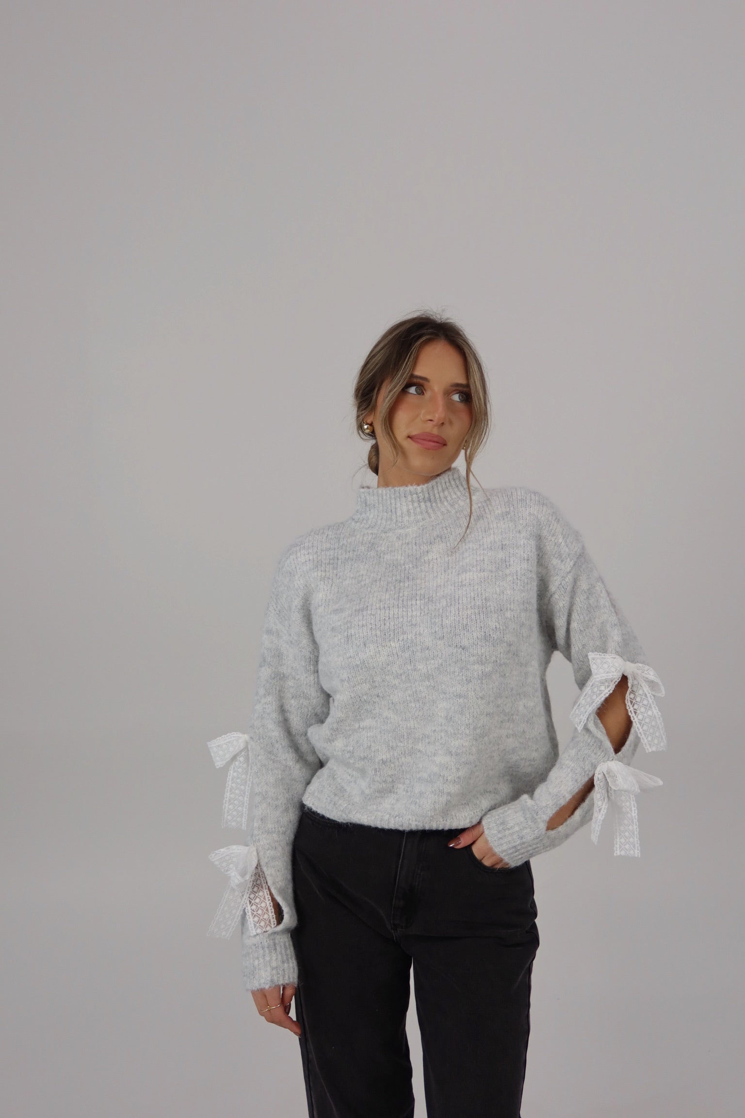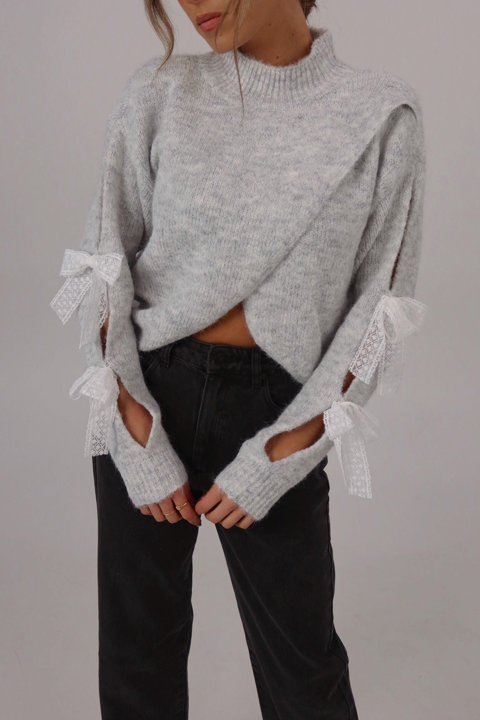 Discover our romantic cropped sweater with cross-front design and ribbon-adorned sleeve slits. Features elegant bow details. Ballet-inspired charm meets cozy style.