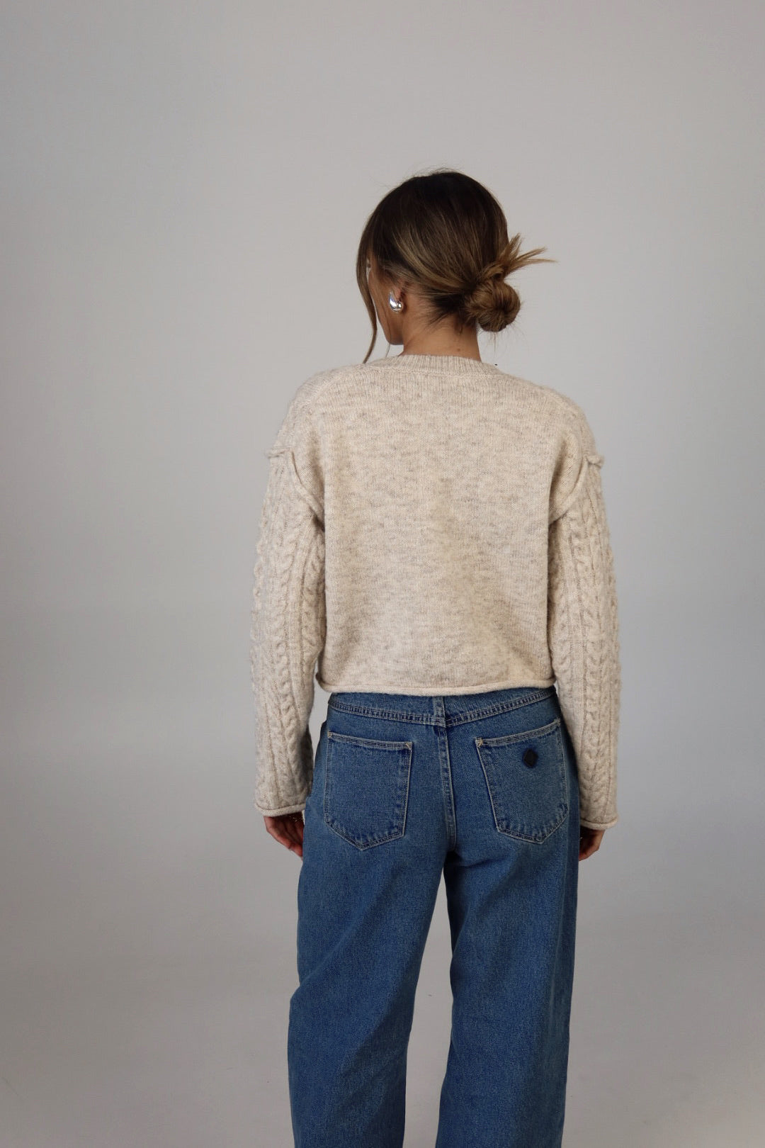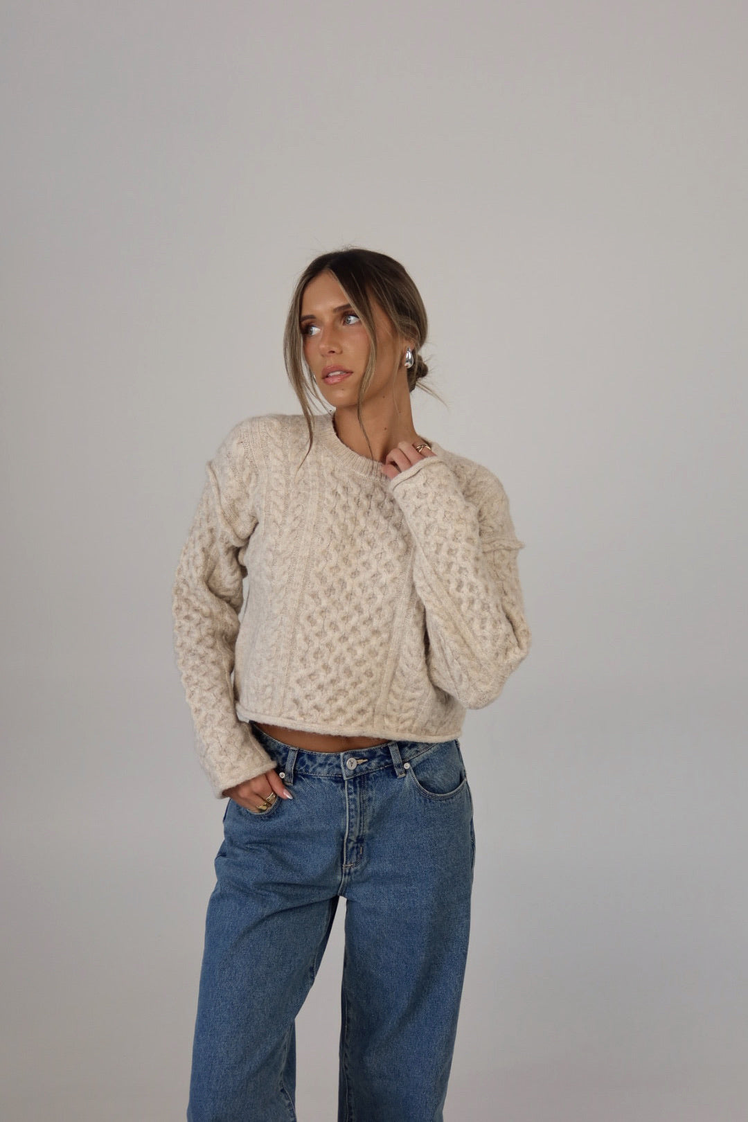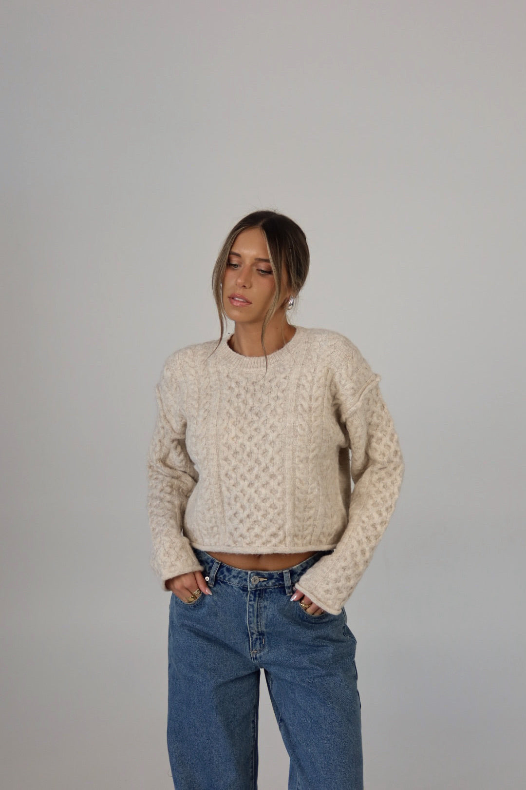 Discover our sustainable Eco Cable Knit Crew Sweater, crafted from recycled materials. Classic cable design meets modern comfort in this versatile layering essential.