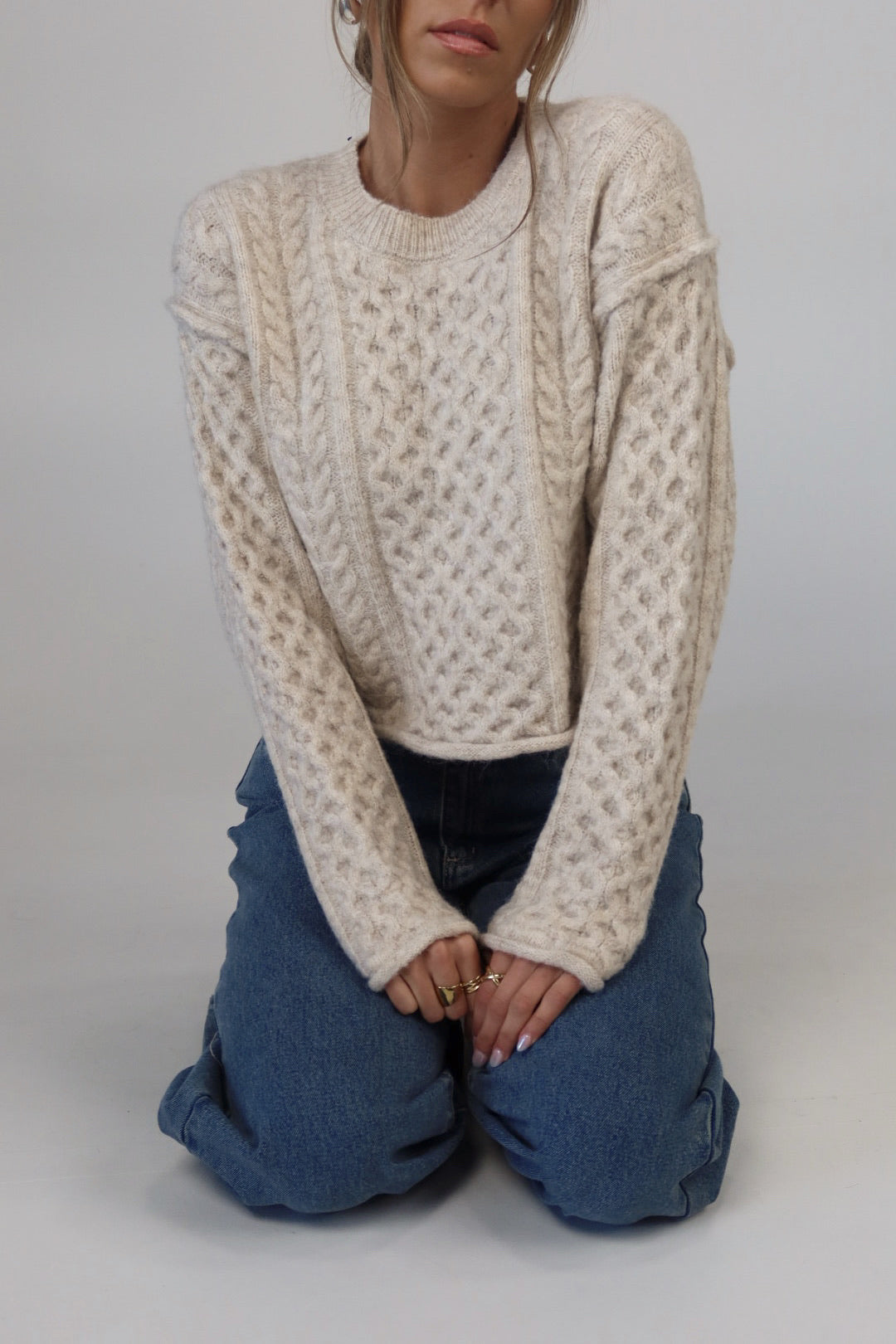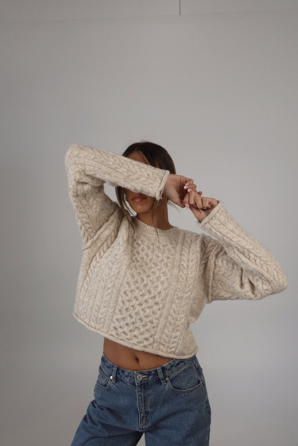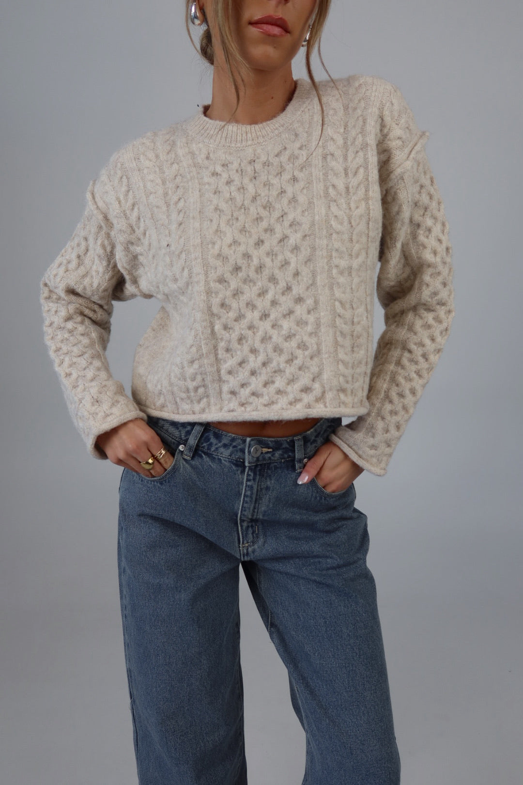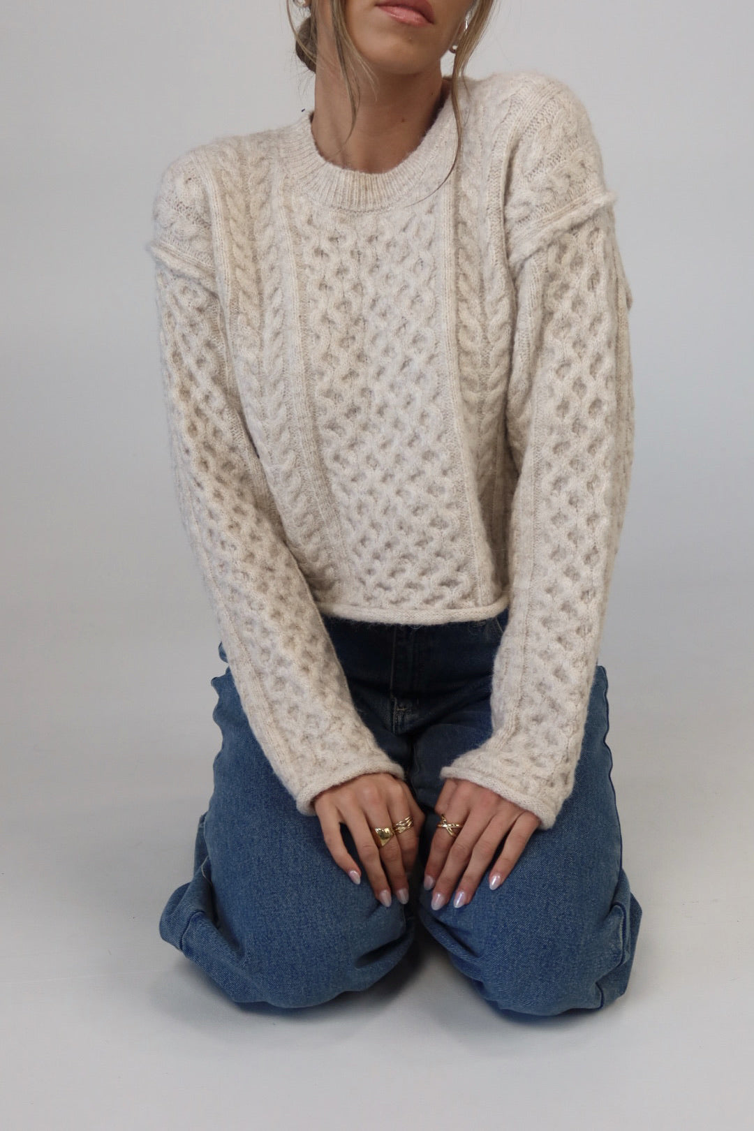 Discover our sustainable Eco Cable Knit Crew Sweater, crafted from recycled materials. Classic cable design meets modern comfort in this versatile layering essential.