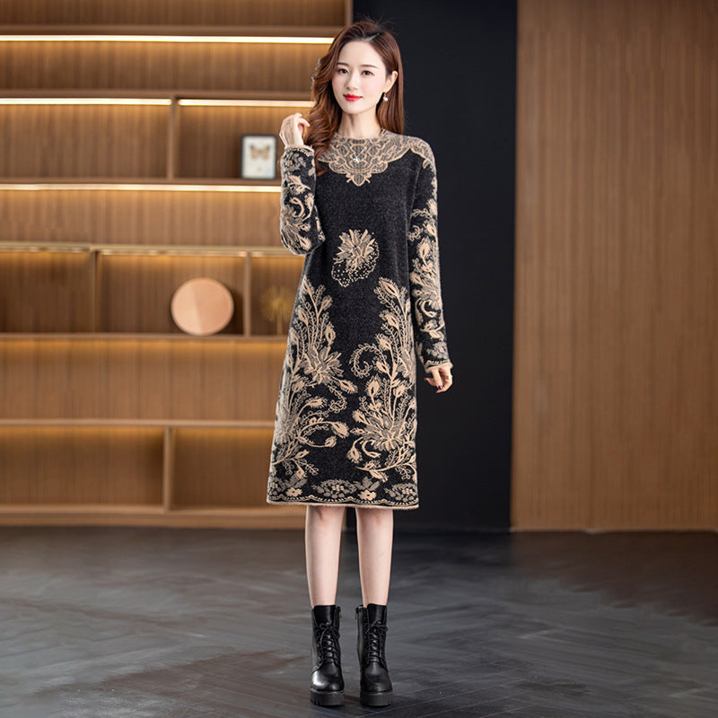 Western Style Artificial Mink Fur Sweater Loose-fitting Mid-length Dress