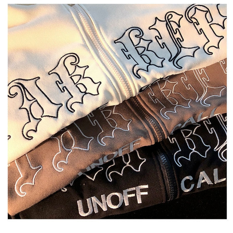 FashionSierra - Letter Embroidery Vintage Loose Zipper Hoodies
