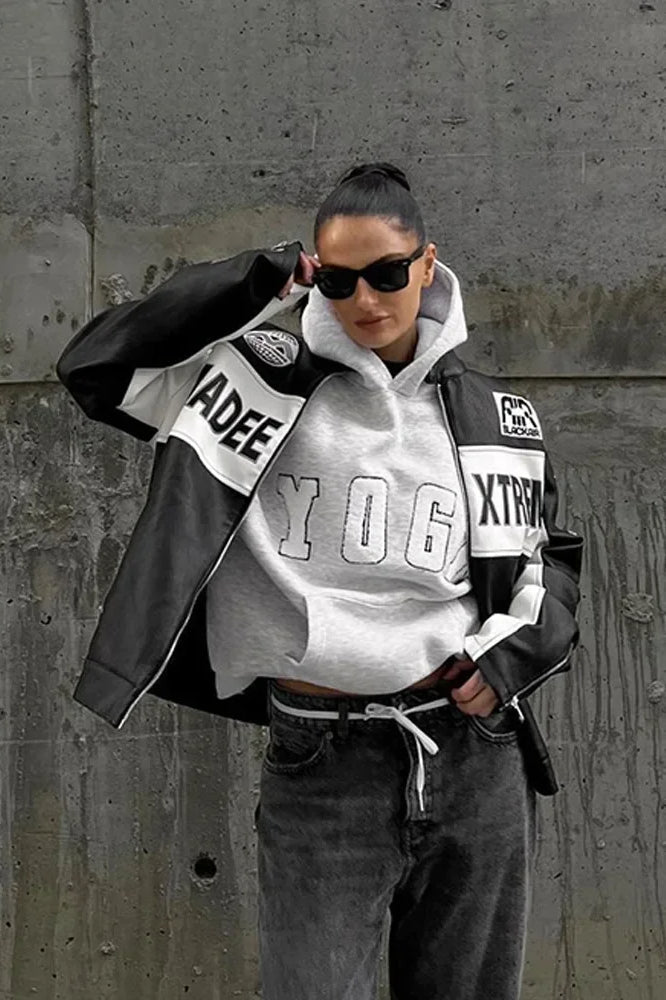 Casual Gray Embroidered Hoodie