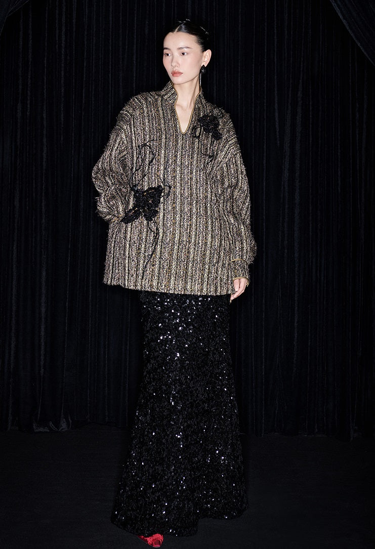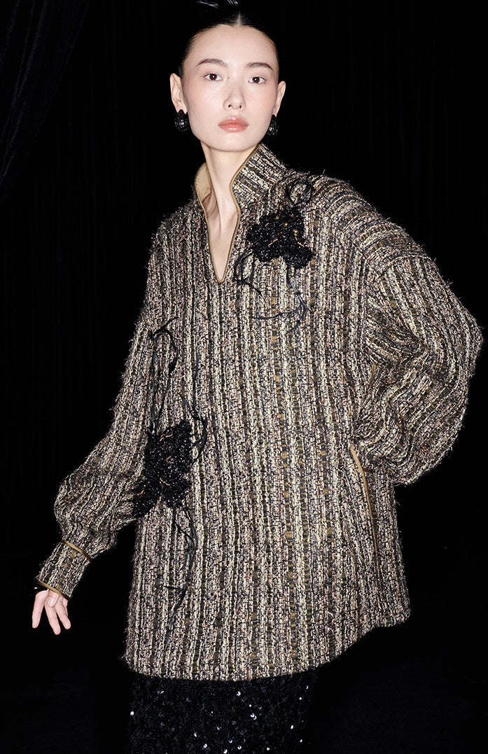 M essential Mackay designer Chanson Wrought Iron Orchid Feather Beaded Top - growth.