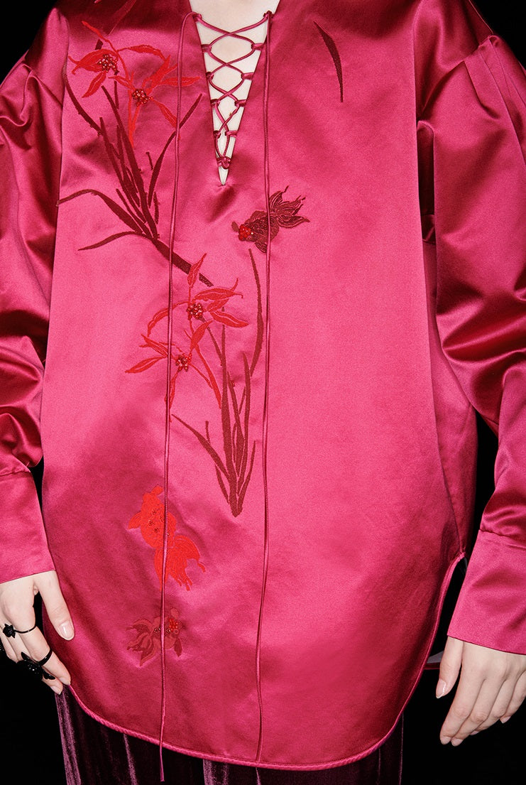 M essential Mackay designer Drunken plum jersey lapel tie loose top - volume.