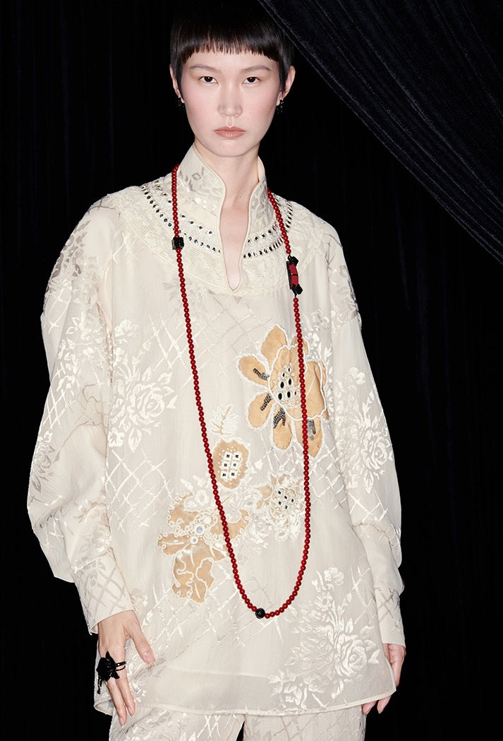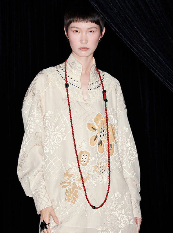 Introducing the M essential Mackay designer brand Hip Burnt Stacked Trim Stand Collar Loose Top! This exquisite top is perfect for those who want to make a statement with their fashion choices. Its unique hip burnt design and stacked trim will add a touch of edginess to any outfit. Stand out from the crowd with this must-have piece.