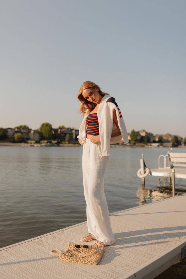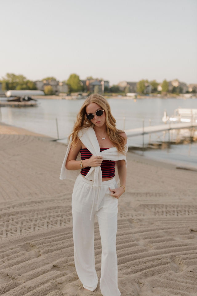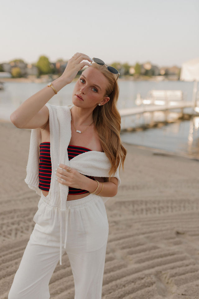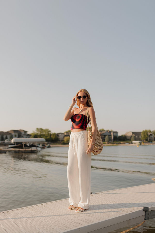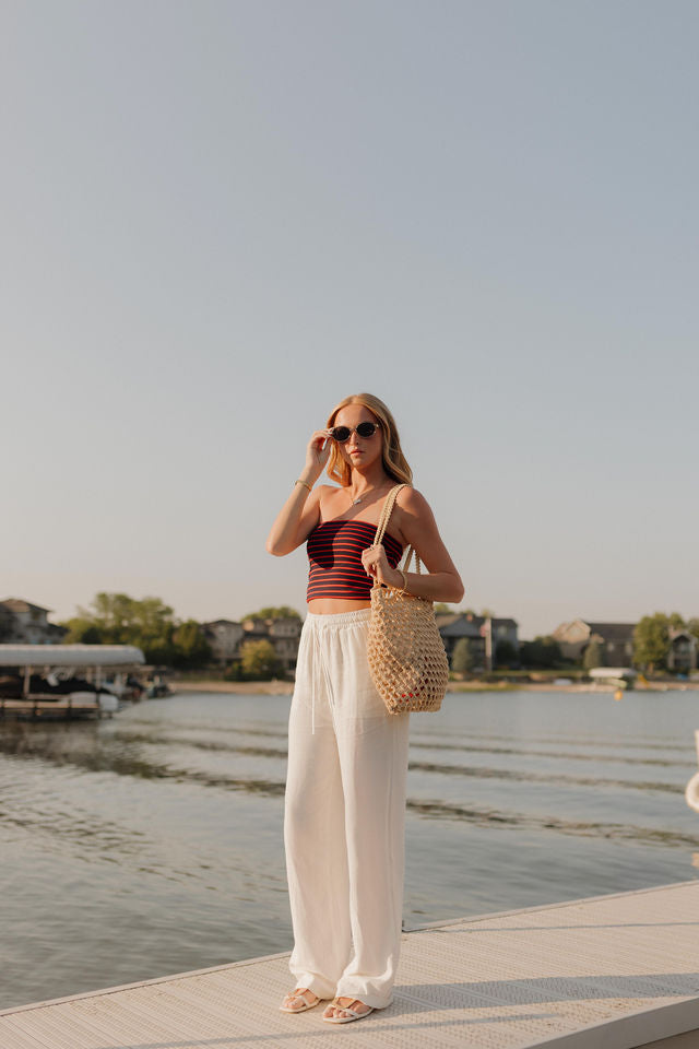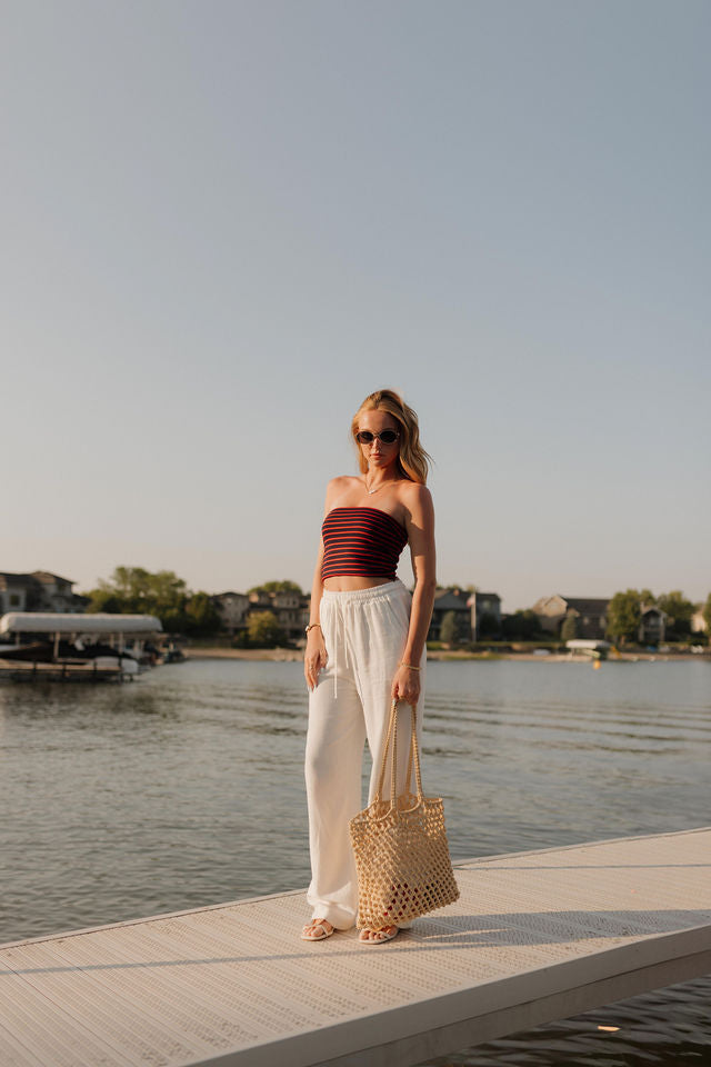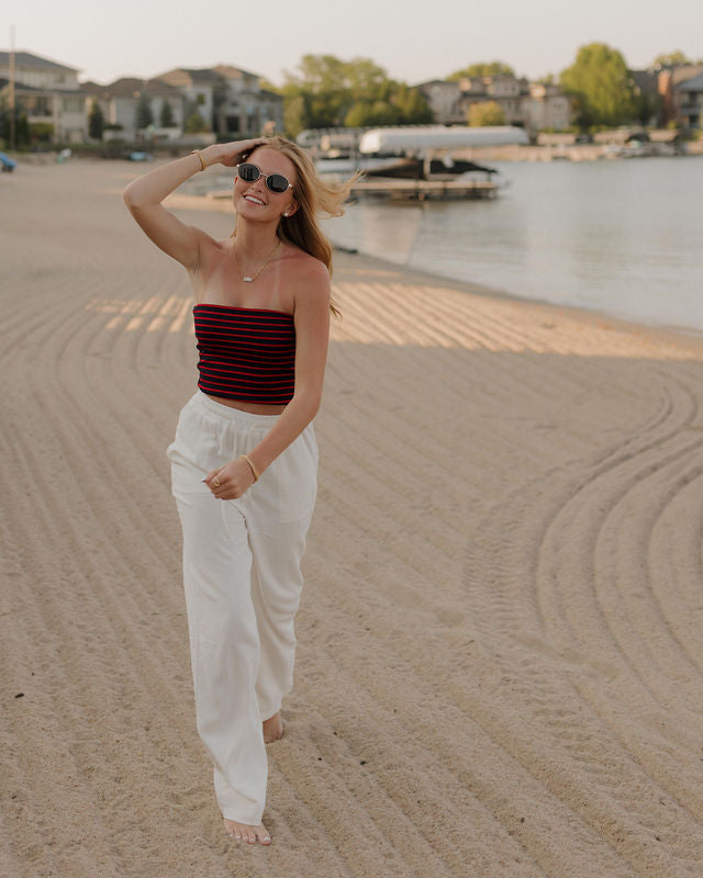 Sailor Striped Tube Top, Strapless Top, Fitted Top, Tube Top, Navy and Red Striped Tube Top, Straight Neckline, Hidden Side Zipper Closure, Stretchy Material, Crop Top, USA, Fourth of July Top, Fourth of July Outfit Inspo.