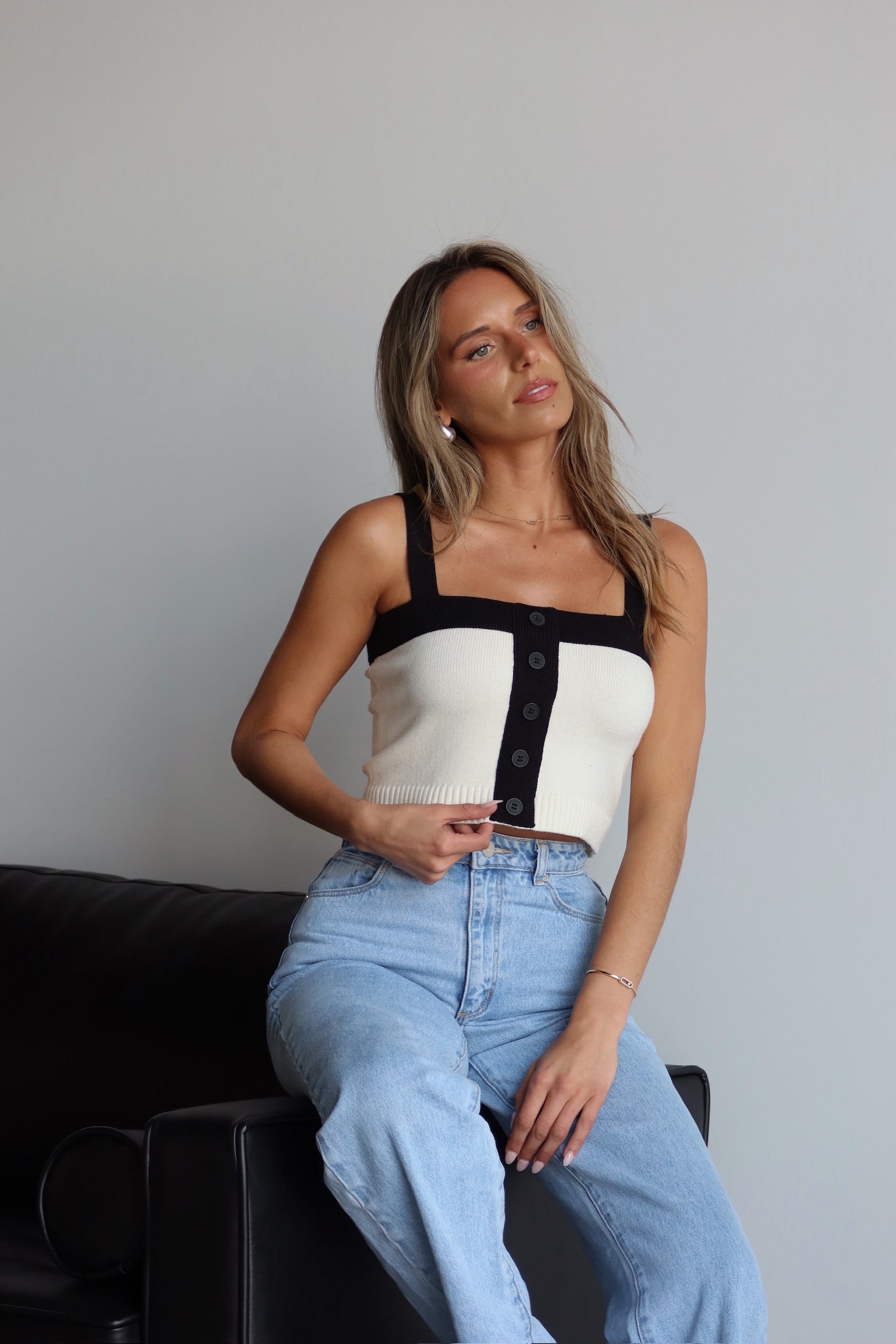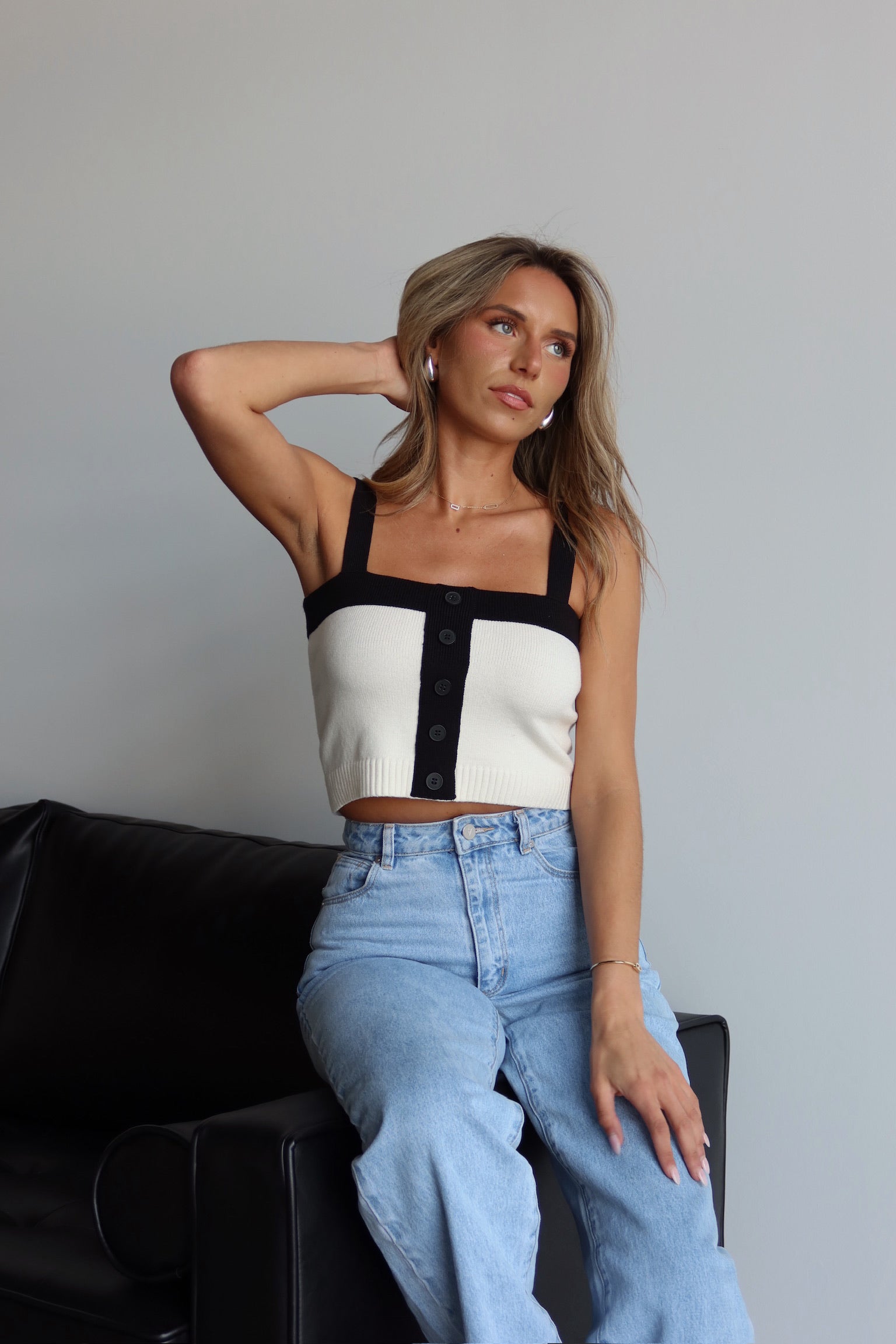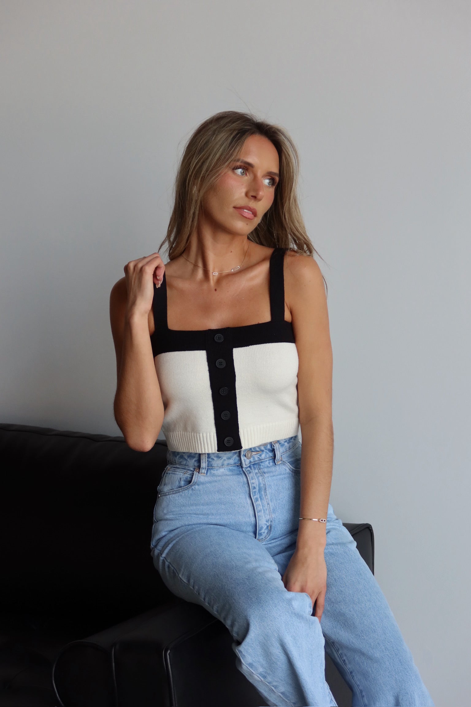 This trendy piece features a striking color block design that effortlessly captures attention.