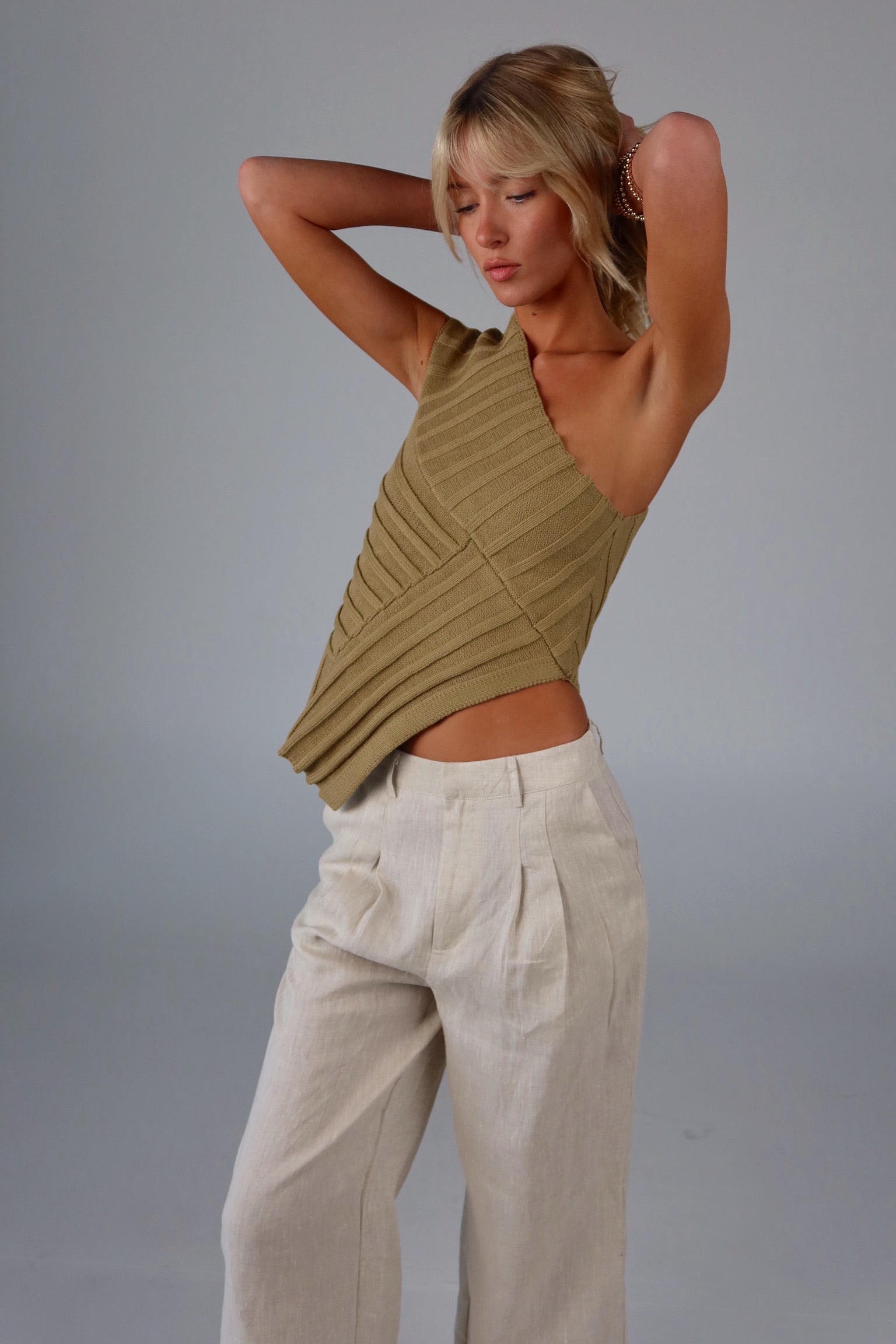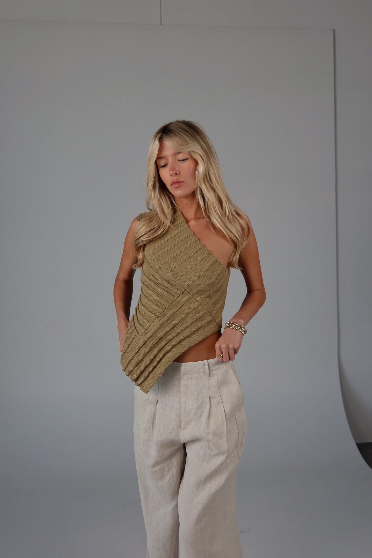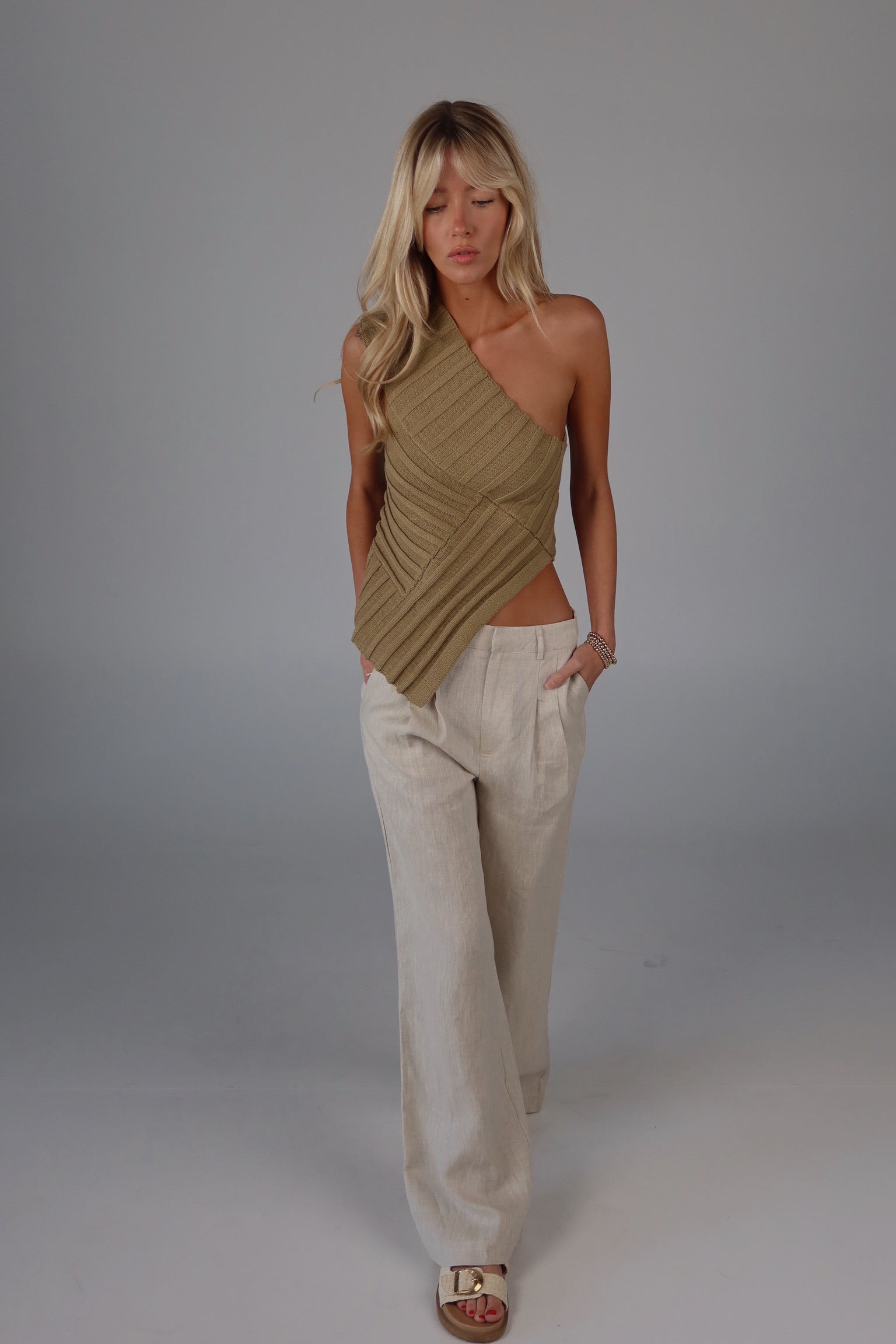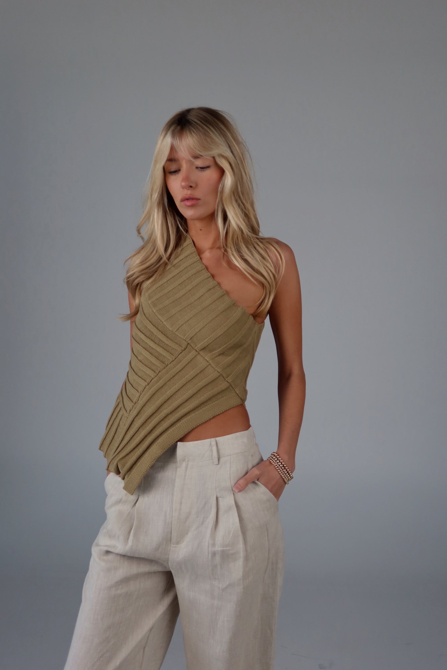 Taylor Asymmetrical One-Shoulder Top In Olive